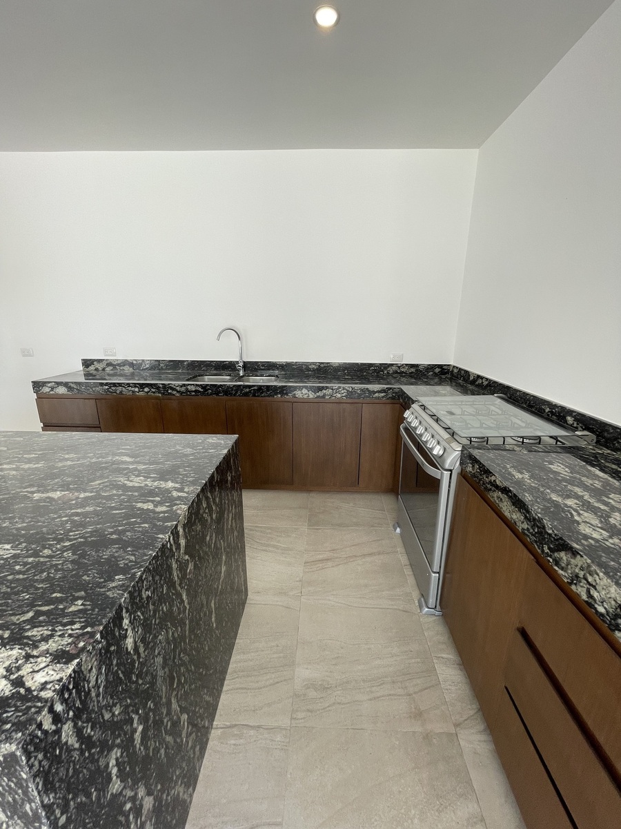 -Cocina con mesetas de granito, carpintería bajo cubierta y parrilla eléctrica