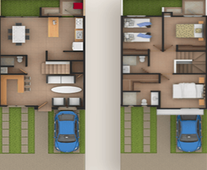 Esta casa tiene un terreno adicional de 48 metros cuadrados con entrada lateral y portón.