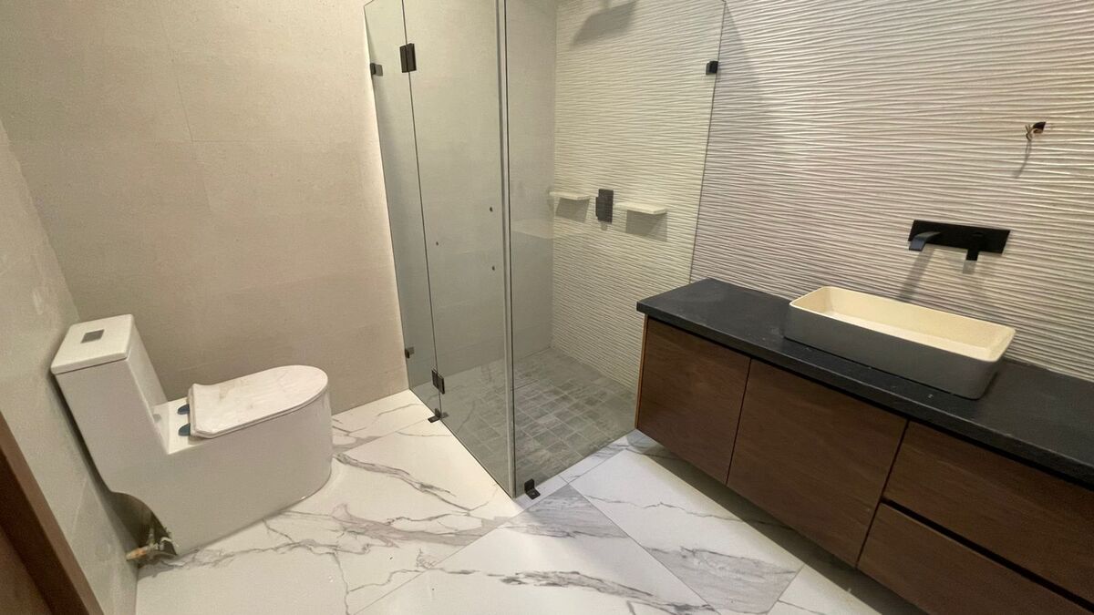 Al entrar, te recibirá un amplio vestíbulo con un diseño minimalista y una escalera elegante que conduce al segundo piso. El área de estar principal es espaciosa y luminosa, con techos altos, paredes de vidrio que permiten vistas al jardín.