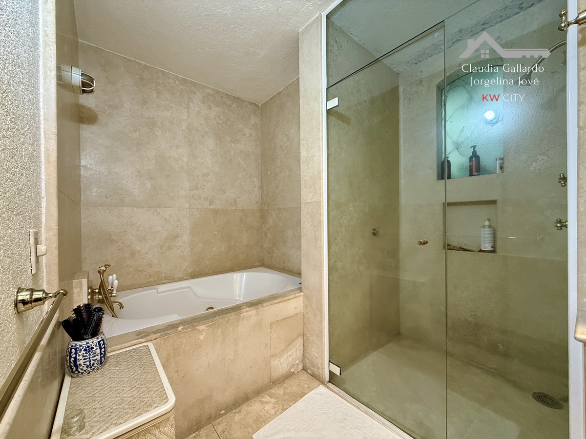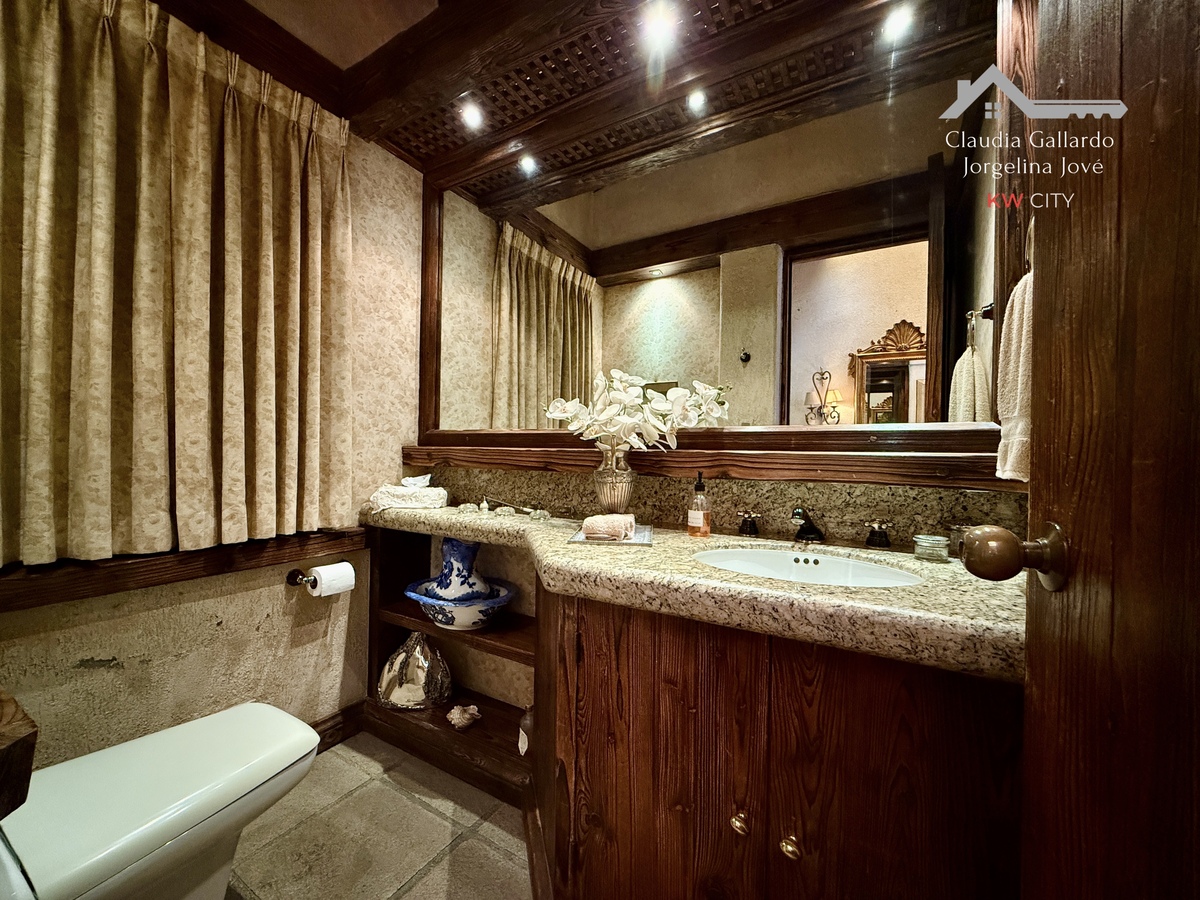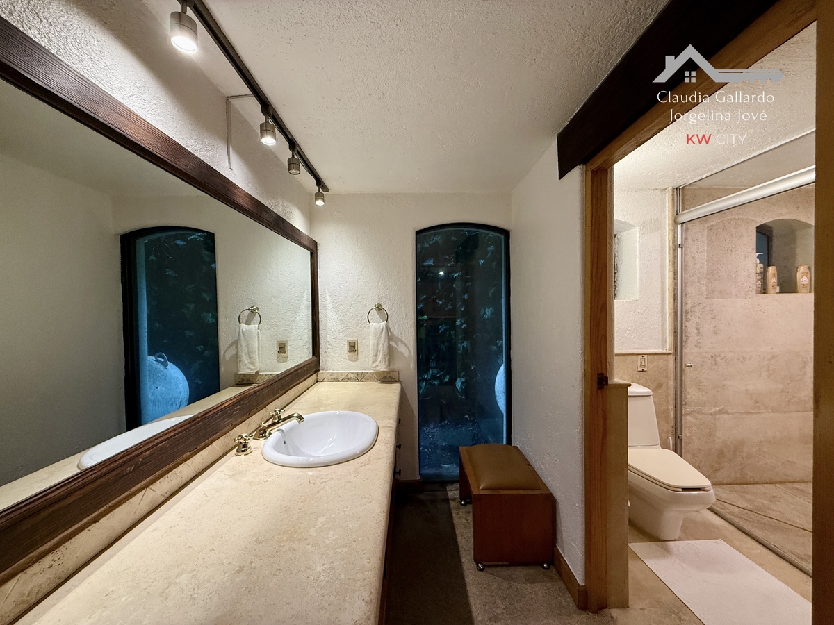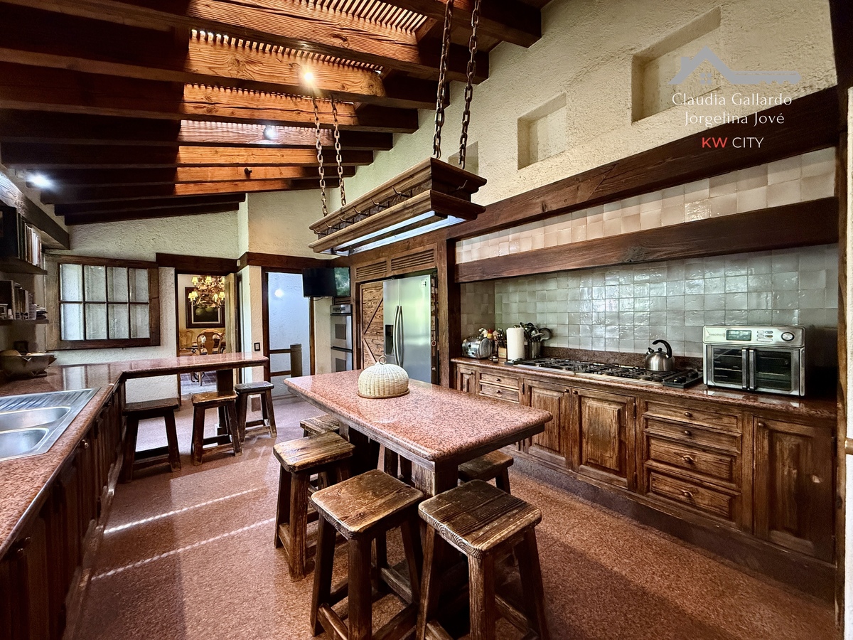 La planta principal distribuye de manera inteligente los espacios de día. La sala y el comedor son áreas generosas que gozan de una magnífica vista arbolada, brindando una sensación de tranquilidad y conexión con el entorno. La cocina, de gran tamaño, cuenta con una isla central y un práctico antecomedor, configurando un espacio funcional para la vida familiar. Un baño de visitas da servicio a esta planta.