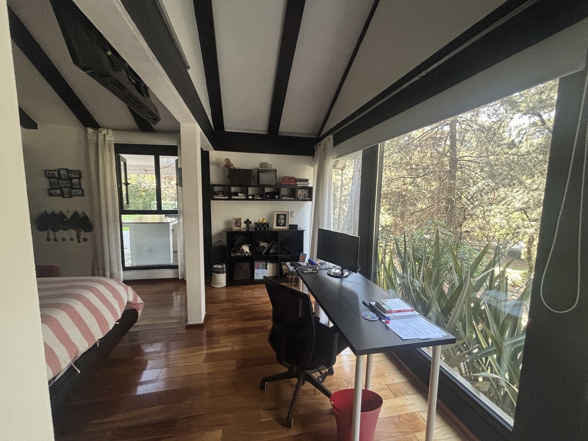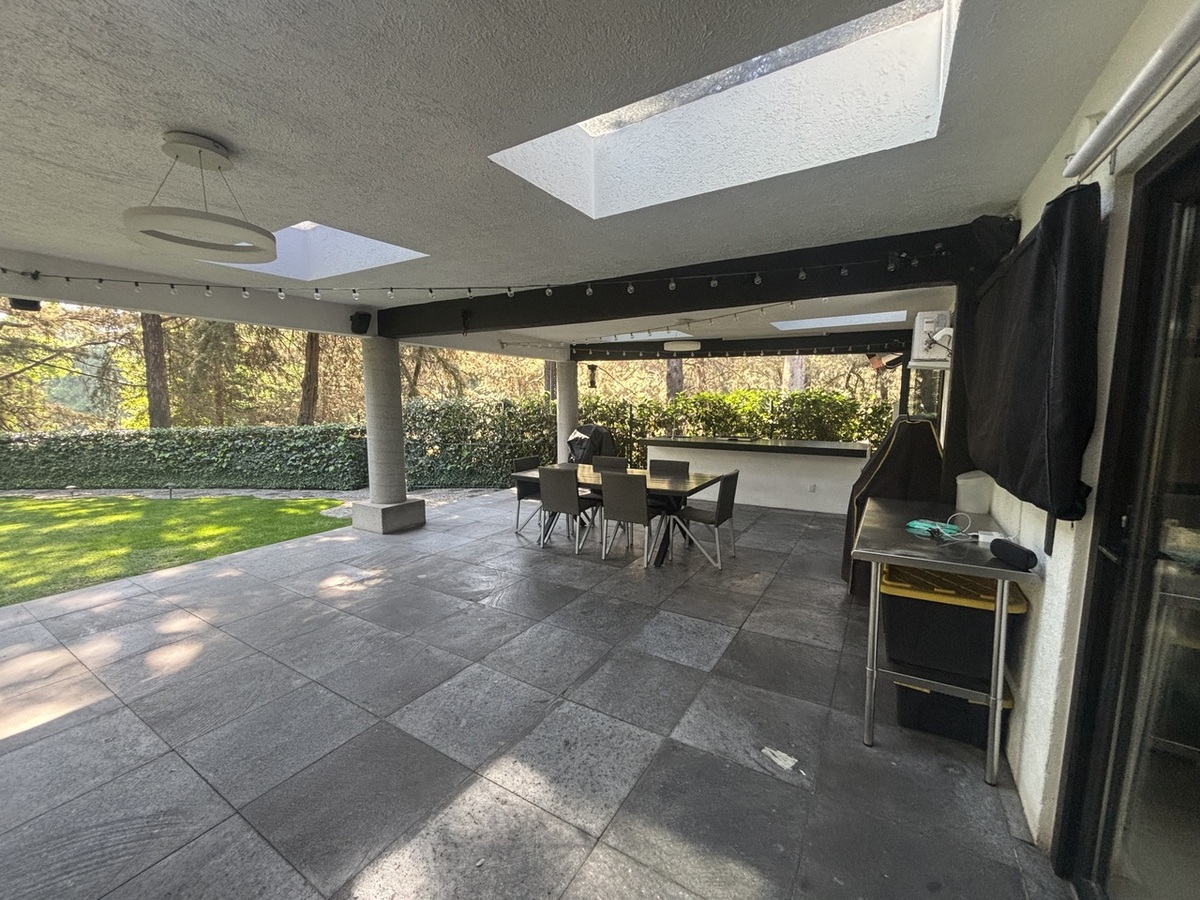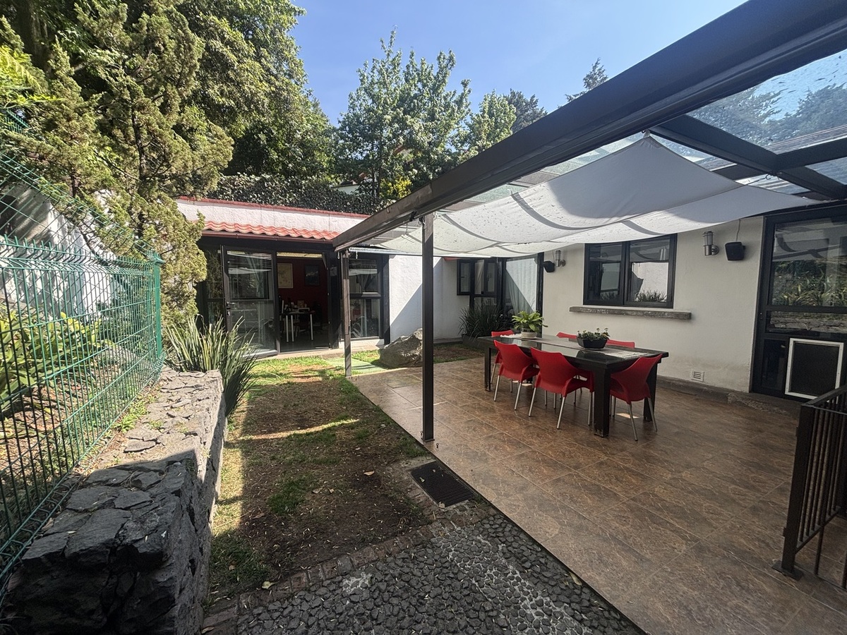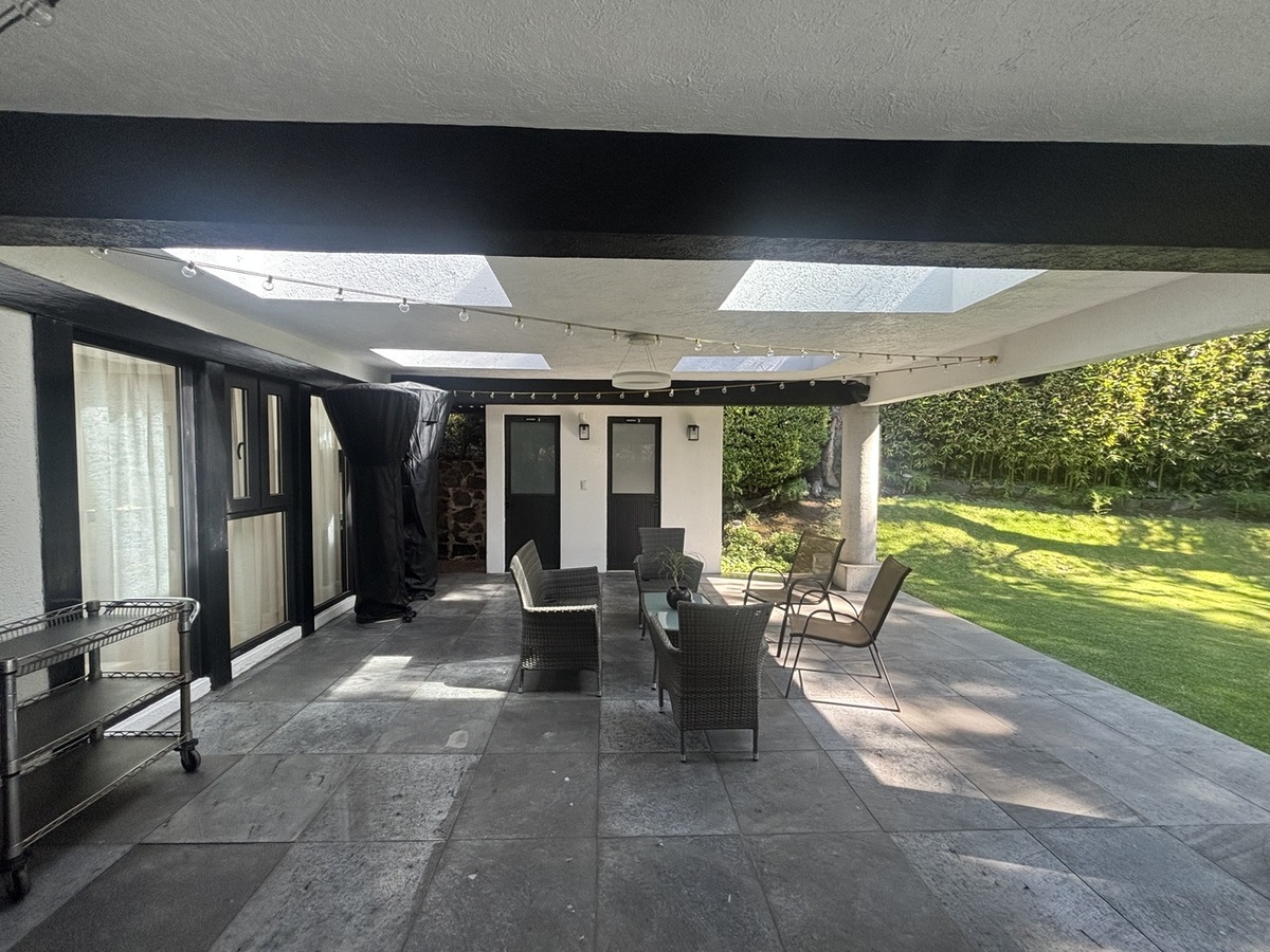Excelente orientación y luz natural, un segundo piso donde se encuentra la lavanderÍa y cuarto de visitas con baño completo, rodeada de arboles y con una gran terraza con barra, estufa completa, tarja y dos medios baños asÍ como un gran jardÍn. 3 recamaras con baño completo y vestidor y una cuarta recámara de visitas con baño completo. Toda la casa tiene ventanas duovent.
