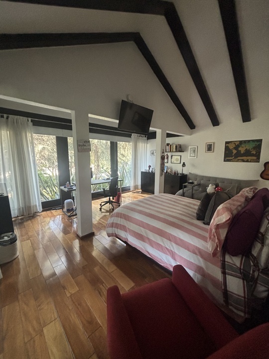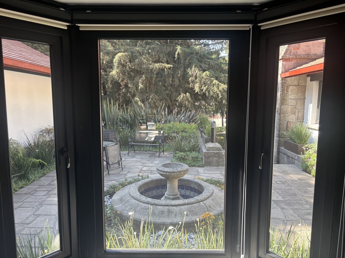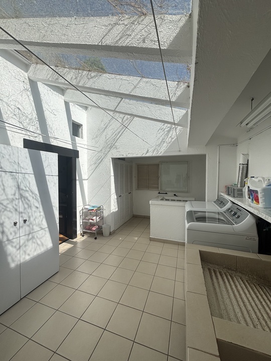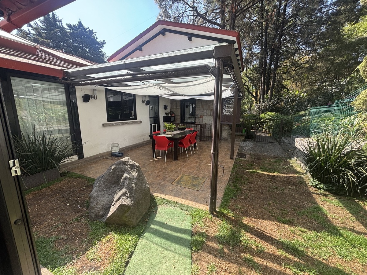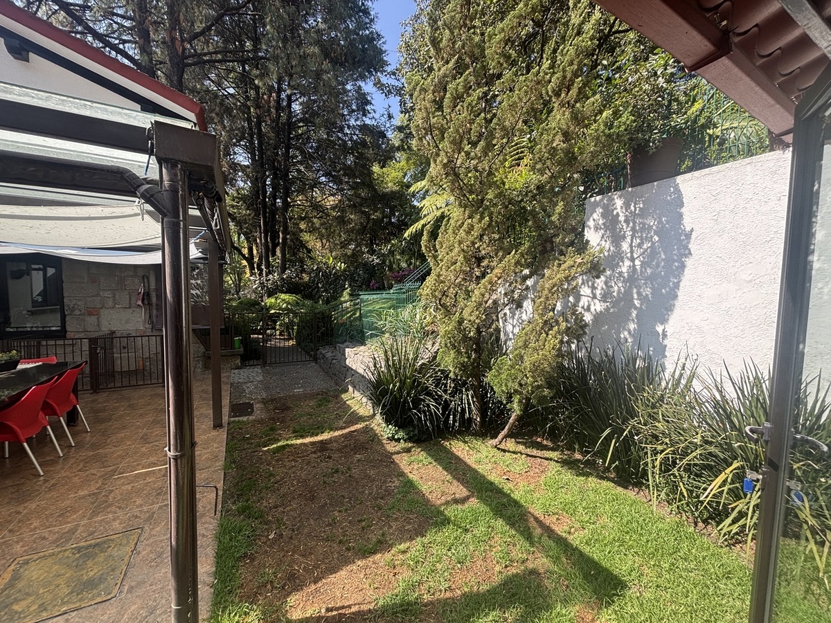 Excelente orientación y luz natural, un segundo piso donde se encuentra la lavanderÍa y cuarto de visitas con baño completo, rodeada de arboles y con una gran terraza con barra, estufa completa, tarja y dos medios baños asÍ como un gran jardÍn. 3 recamaras con baño completo y vestidor y una cuarta recámara de visitas con baño completo. Toda la casa tiene ventanas duovent.
