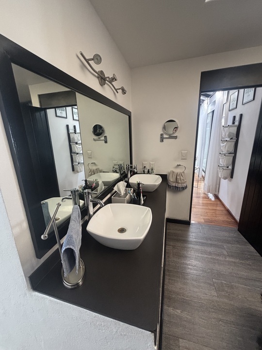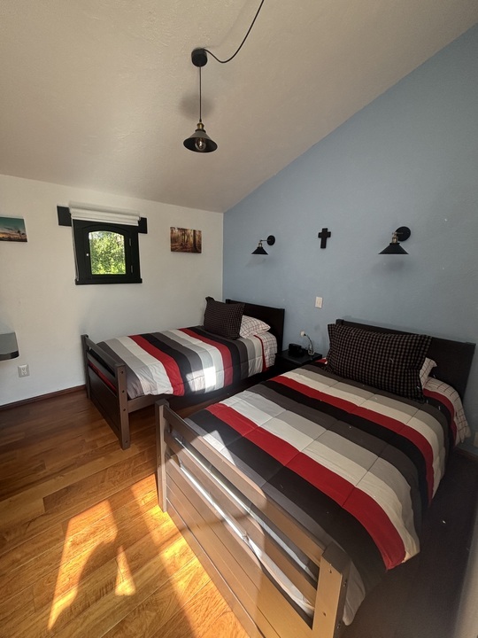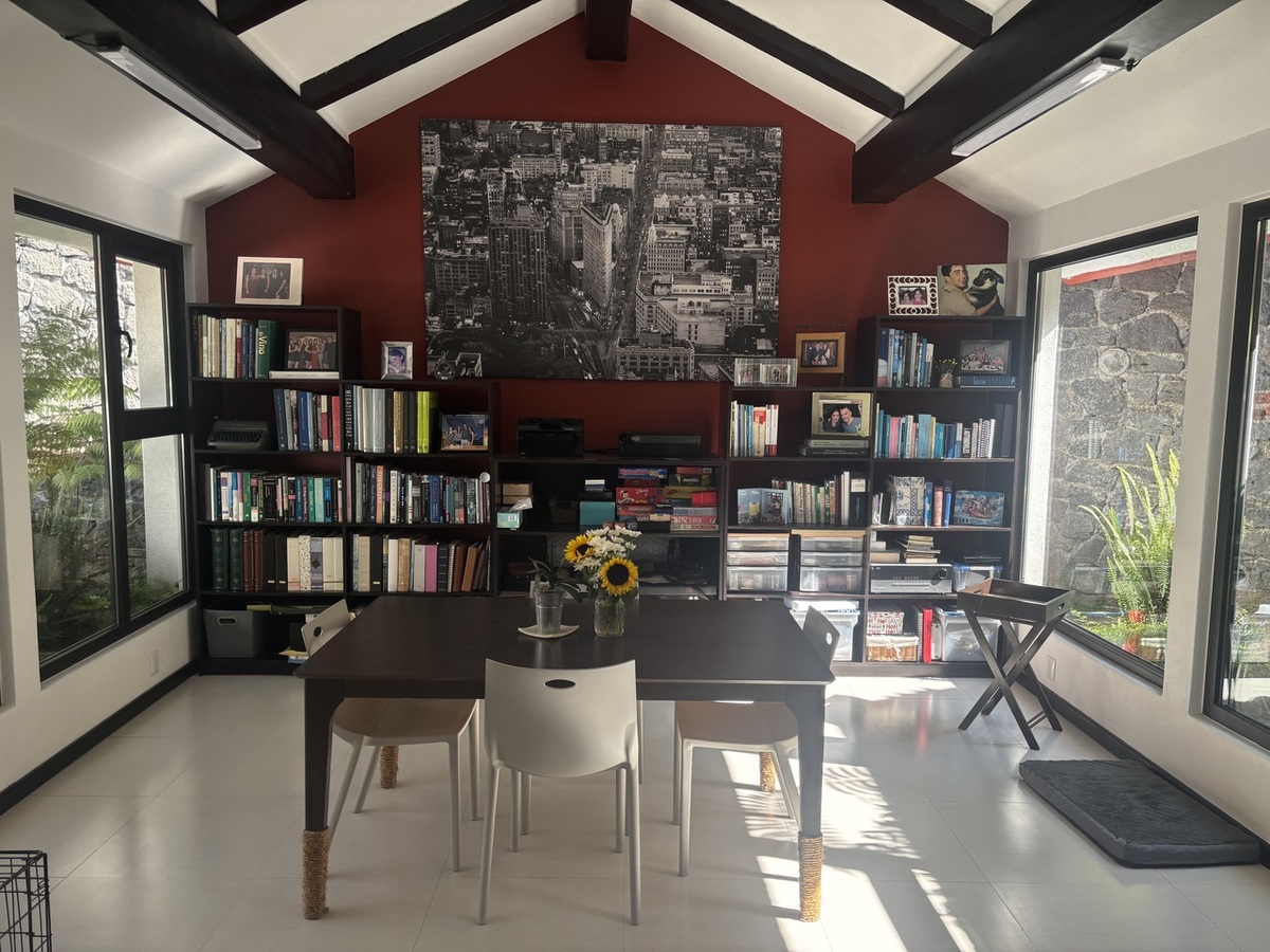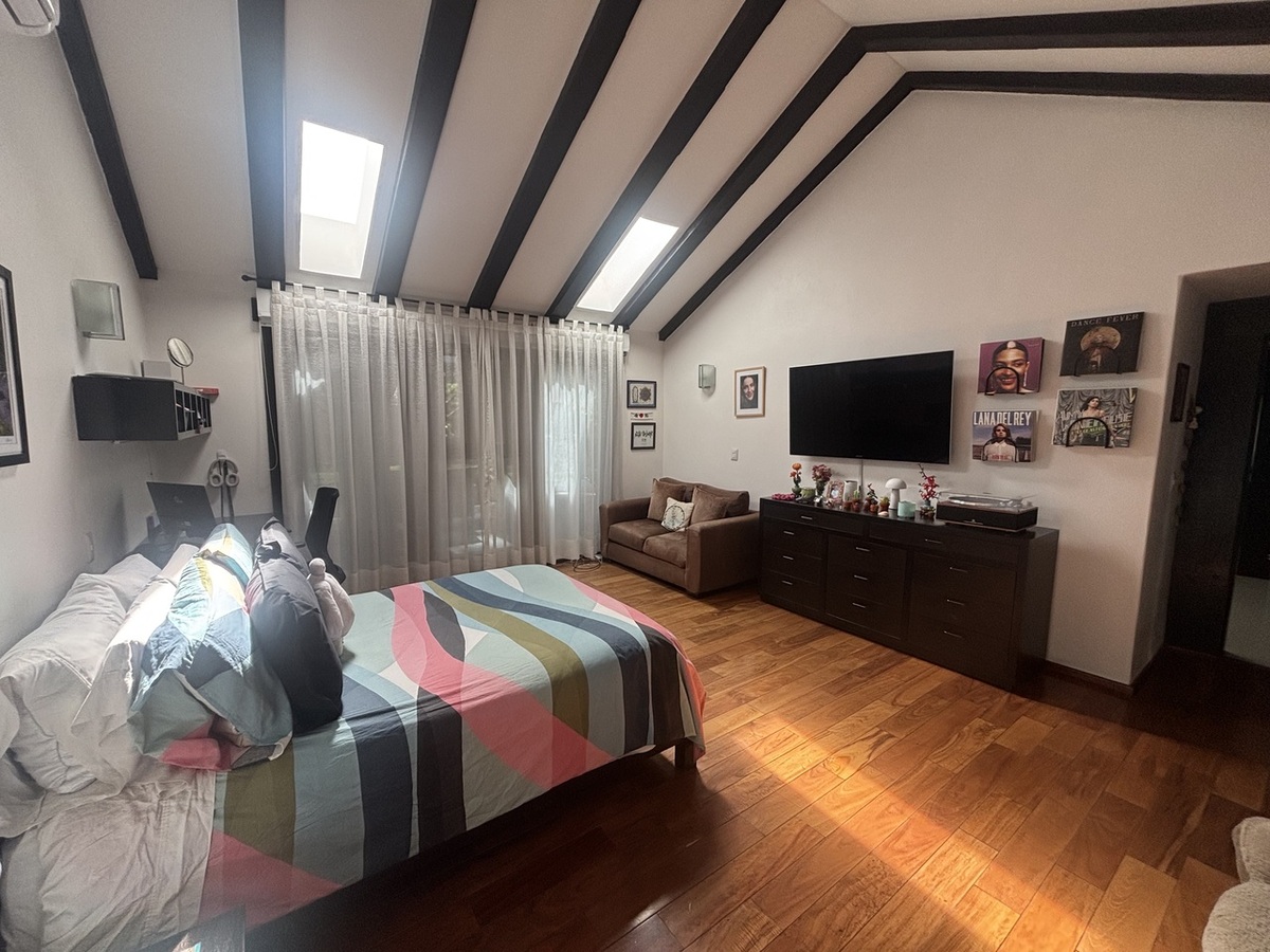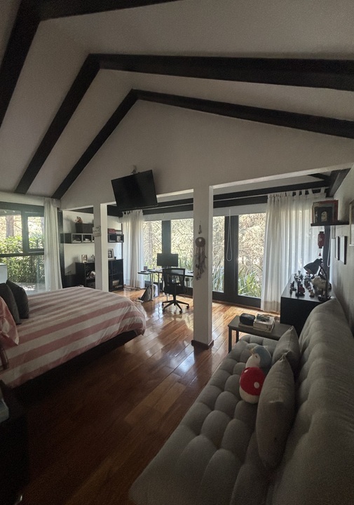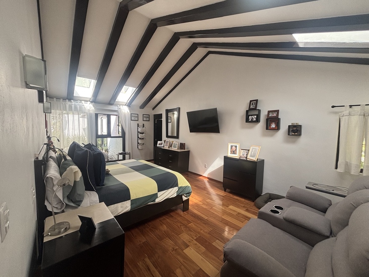 Excelente orientación y luz natural, un segundo piso donde se encuentra la lavanderÍa y cuarto de visitas con baño completo, rodeada de arboles y con una gran terraza con barra, estufa completa, tarja y dos medios baños asÍ como un gran jardÍn. 3 recamaras con baño completo y vestidor y una cuarta recámara de visitas con baño completo. Toda la casa tiene ventanas duovent.