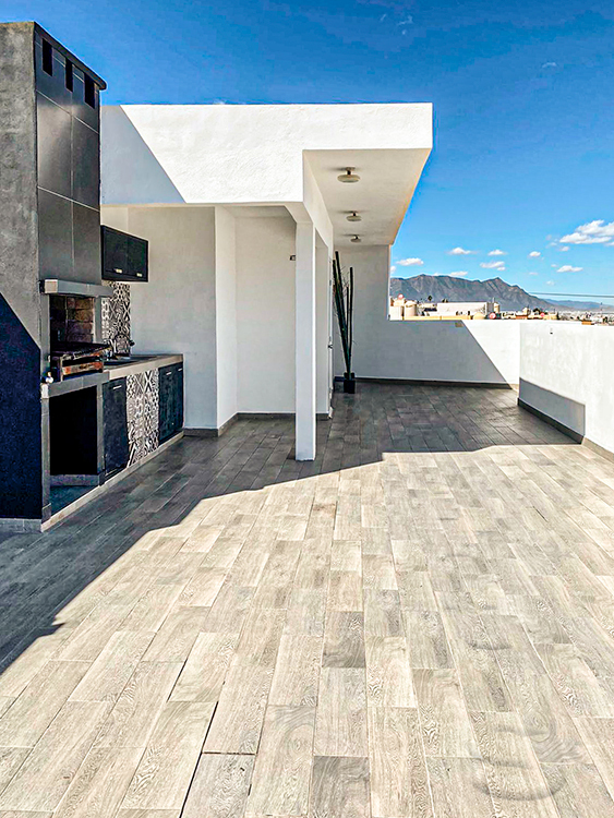 tercer nivel: terraza con barra y asador, bodega y baño completo.