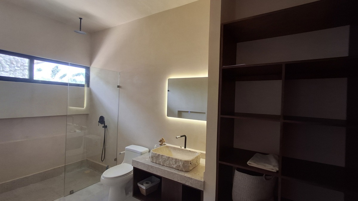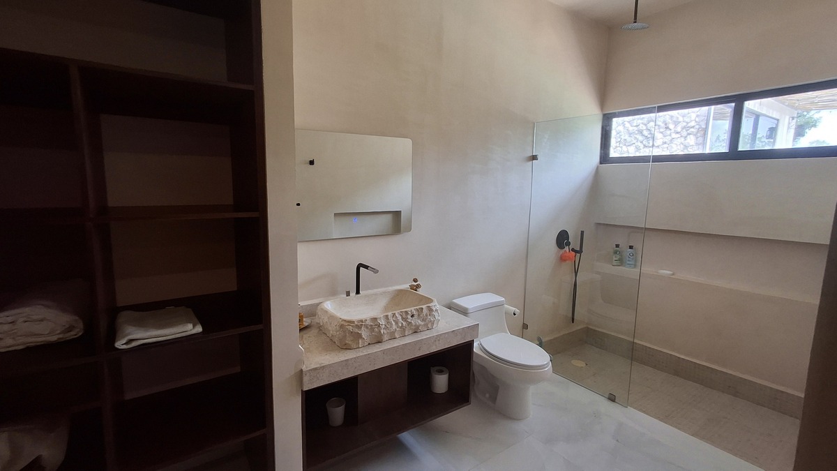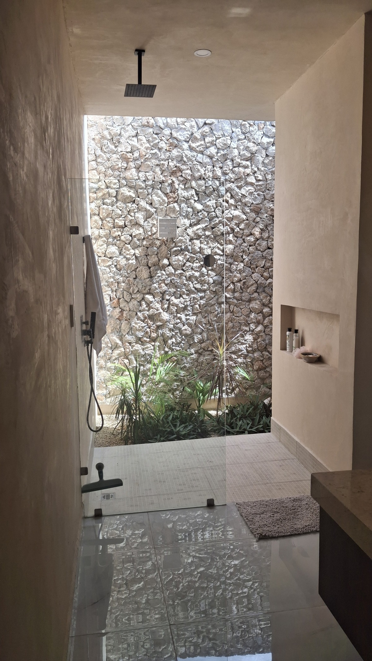 Hermosa casa de un piso con acabados de lujo estilo orgánico que fluye con la naturaleza del entorno, construida en amplio terreno con orientación norte-sur y con materiales de primera calidad.