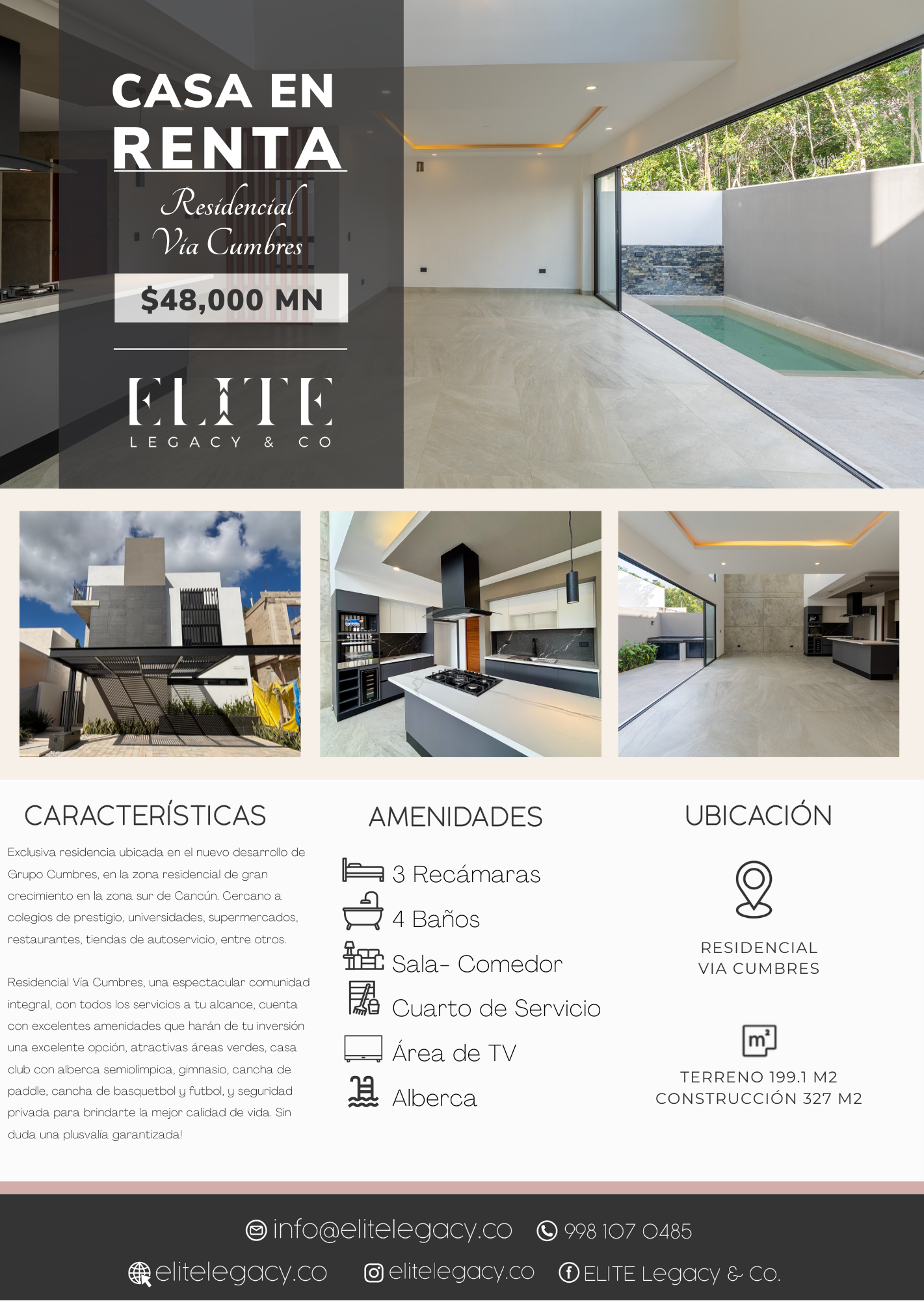 Exclusiva residencia ubicada en el nuevo desarrollo de Grupo Cumbres, en la zona residencial de gran crecimiento en la zona sur de Cancún. Cercano a colegios de prestigio, universidades, supermercados, restaurantes, tiendas de autoservicio, entre otros.