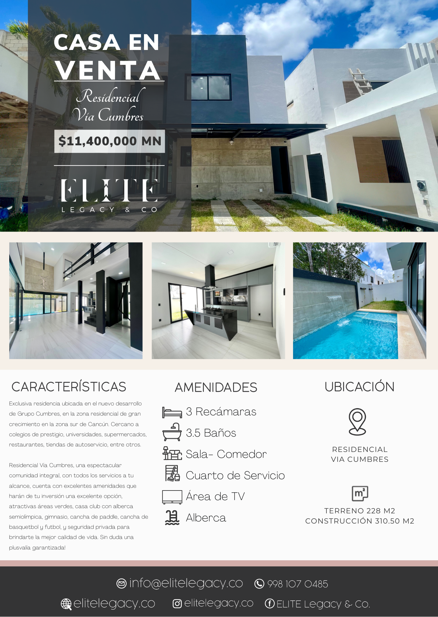 Exclusiva residencia ubicada en el nuevo desarrollo de Grupo Cumbres, en la zona residencial de gran crecimiento en la zona sur de Cancún. Cercano a colegios de prestigio, universidades, supermercados, restaurantes, tiendas de autoservicio, entre otros.
