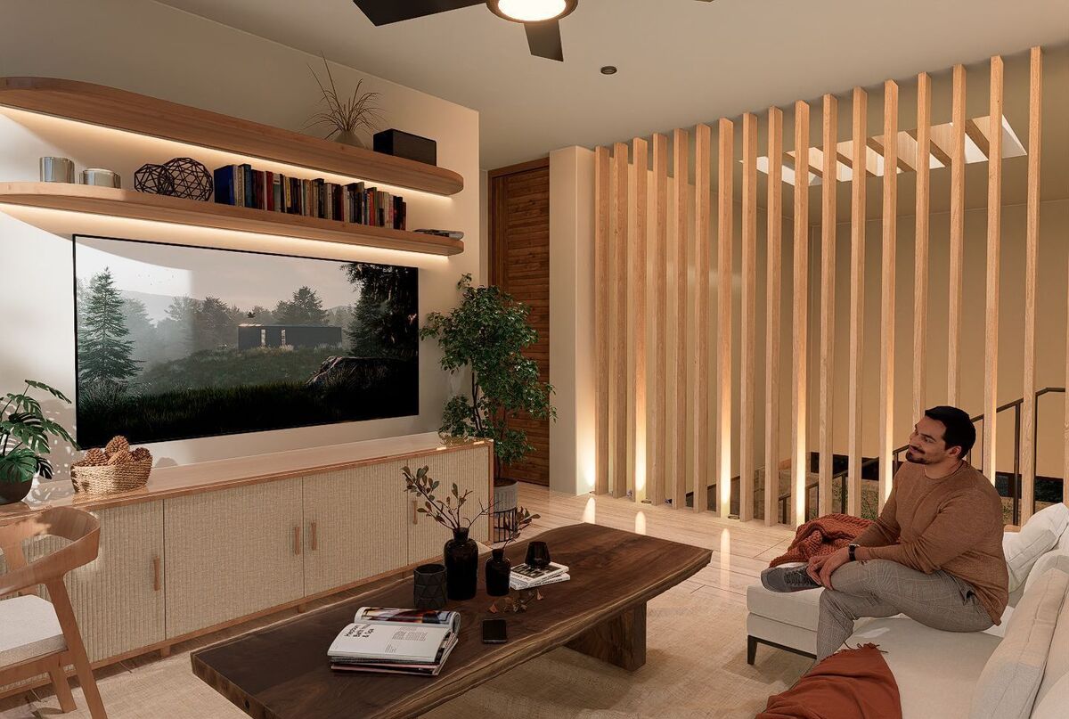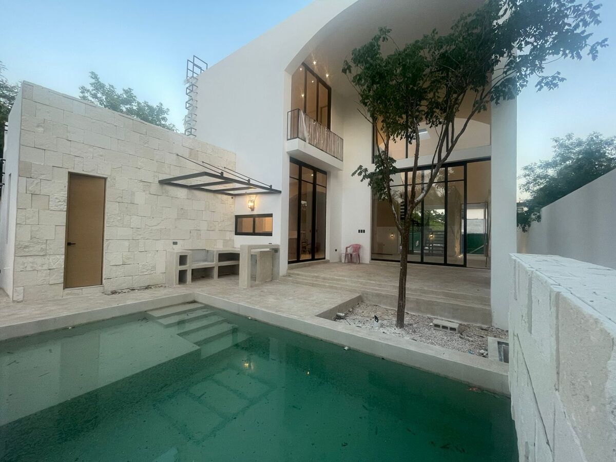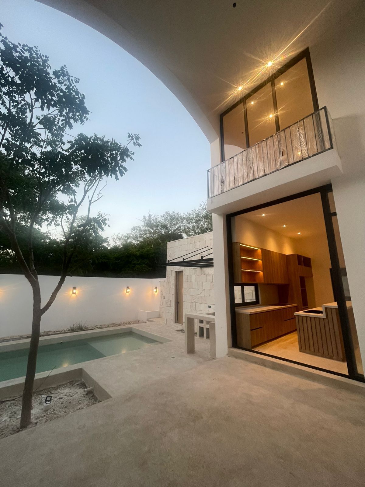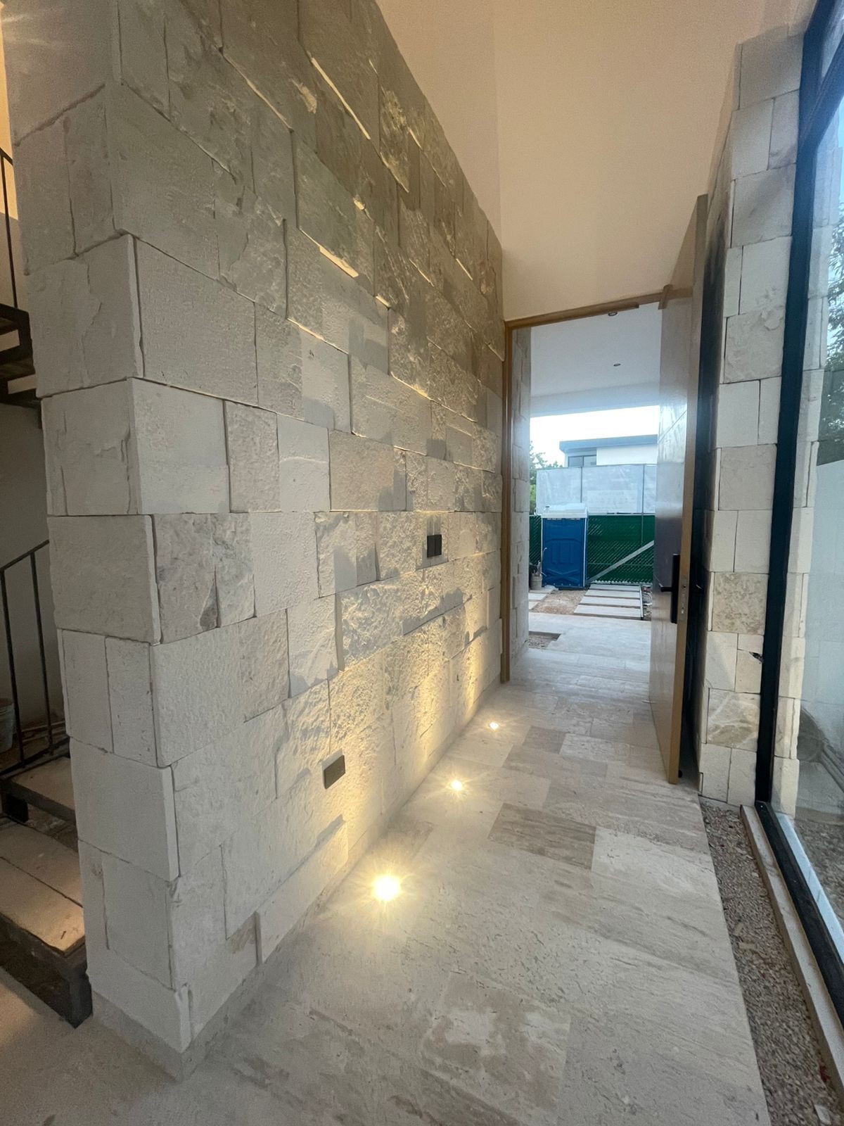La casa cuenta con 4 recámaras más un family room, todo diseñado bajo el estilo mediterráneo conremporáneo, que combina materiales como el mármol travertino, la piedra de cantera galarza, el cuarzo y chukum, dando una combinación de tonos neutros cálidos y armoniosos.