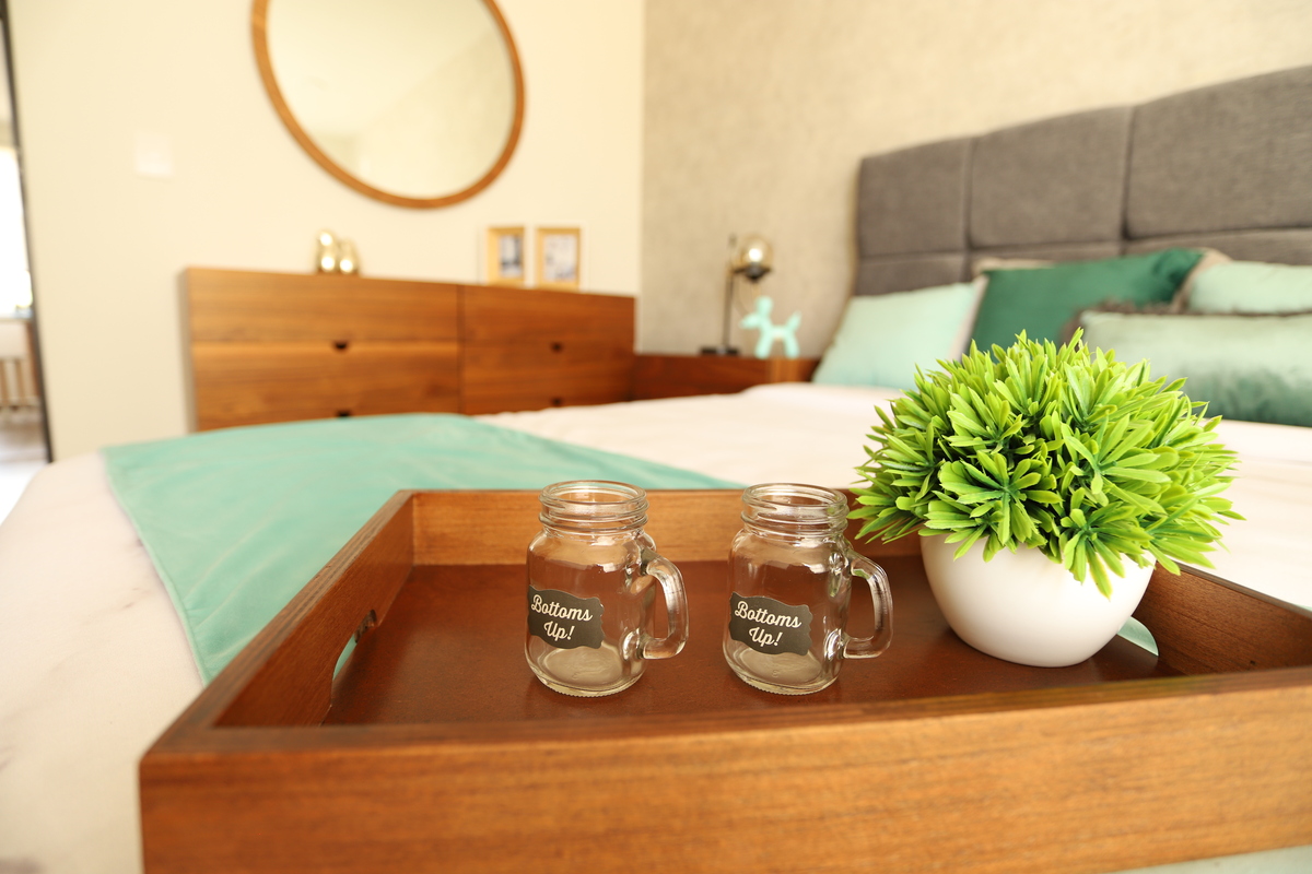 Disfruta de acabados que combinan funcionalidad y estilo, como la cocina integral con cubierta de granito y la sala-comedor con espacios bien definidos. Los detalles en la decoración, como la obra de arte abstracta y los muebles de diseño, crean un ambiente acogedor.