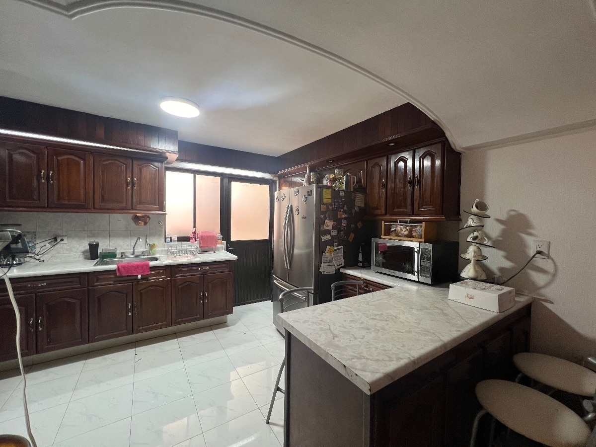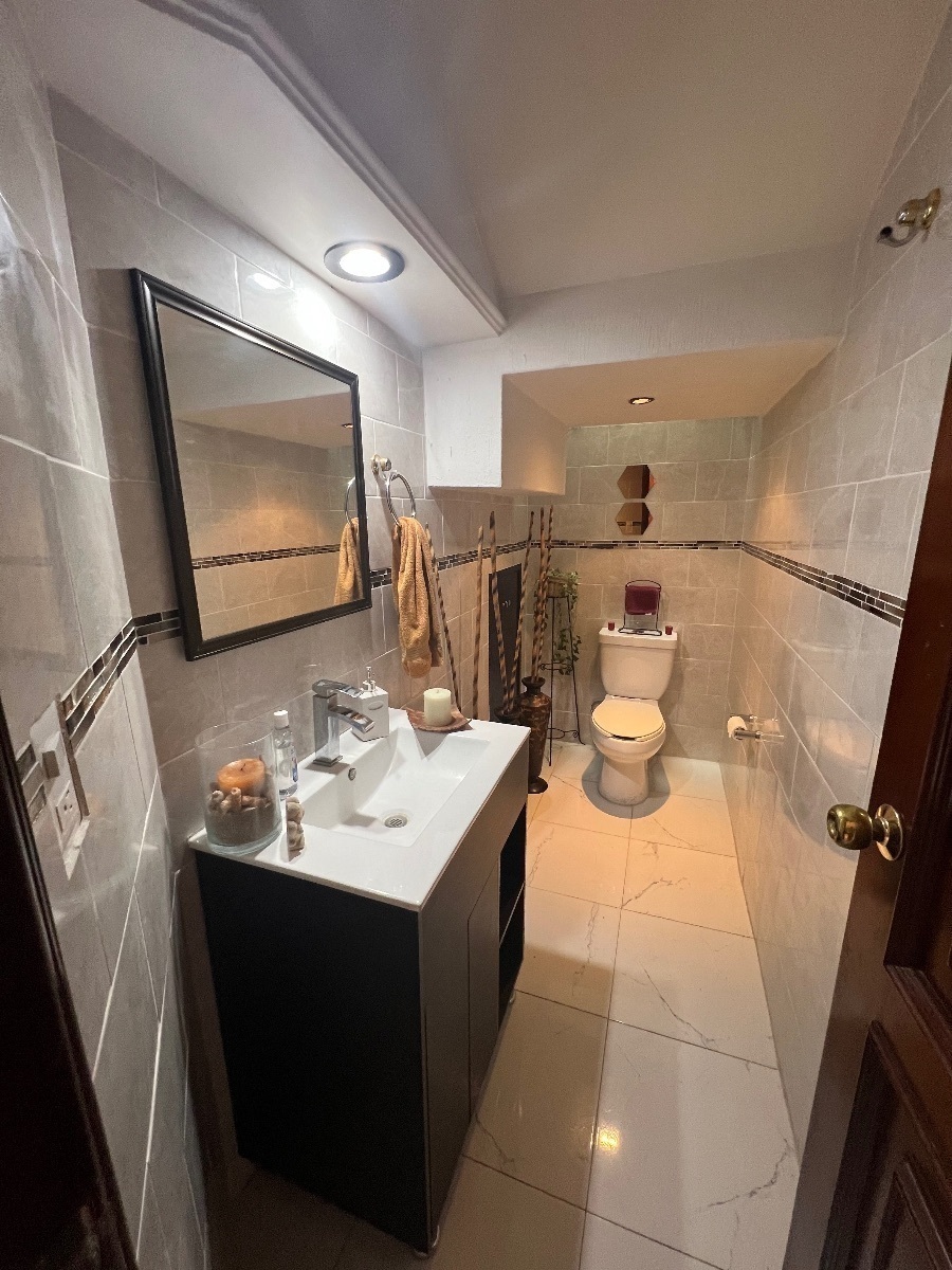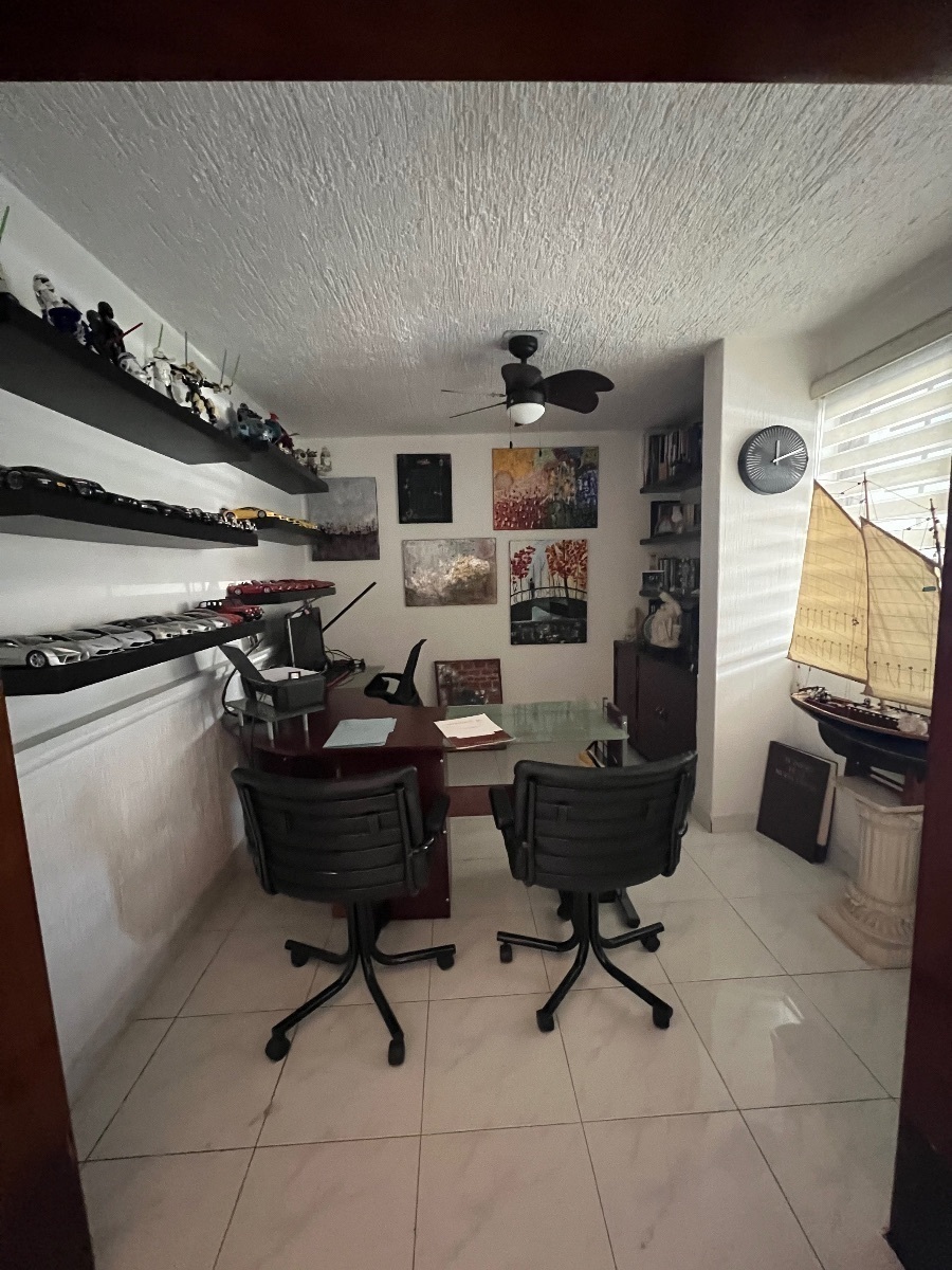 En planta baja cuenta con cochera para 3 autos, recibidor con doble altura, un medio baño de visitas, cocina integral, sala comedor, estudio, cuarto de servicio con baño completo y área de lavado, una amplia terraza.