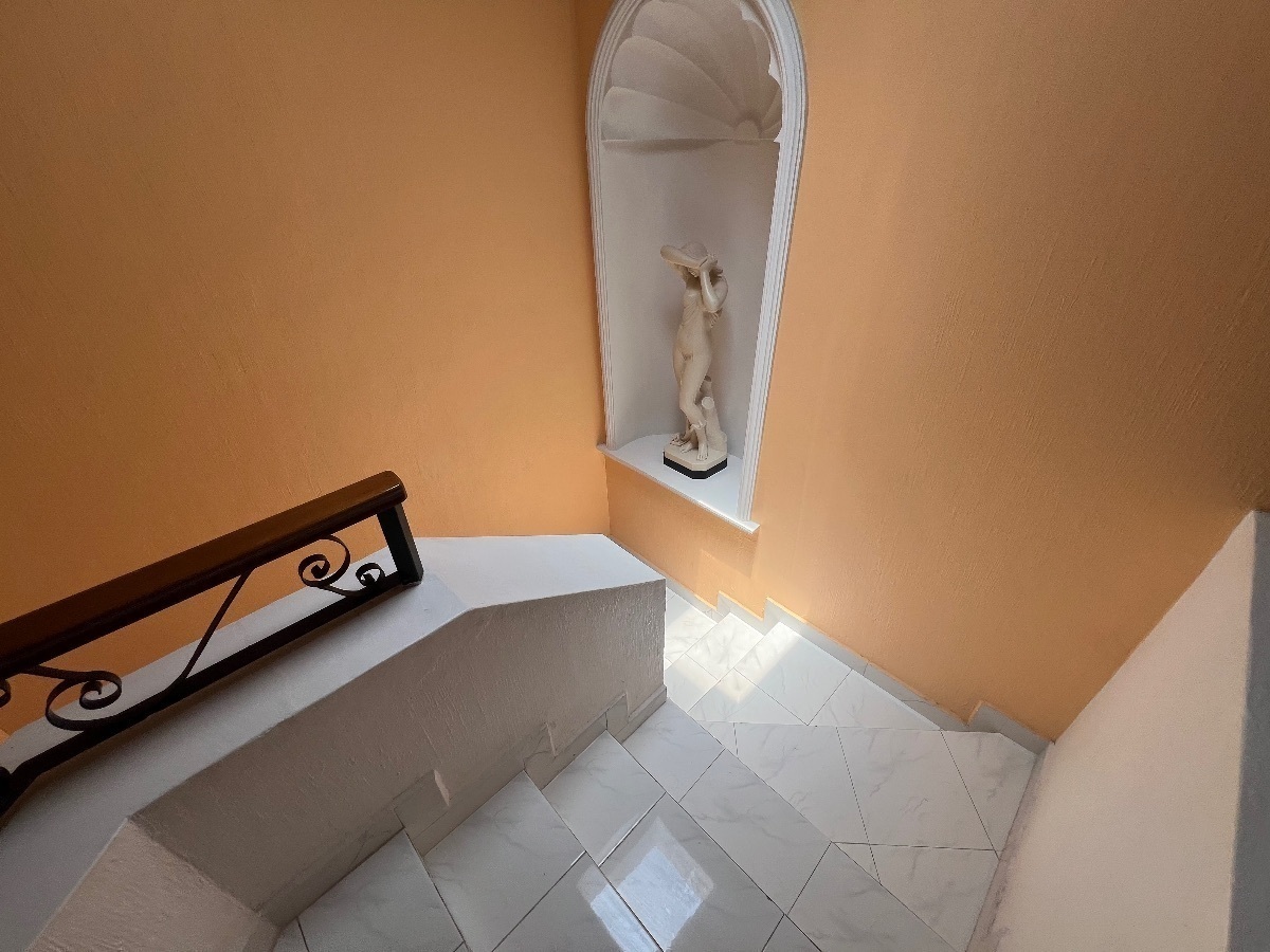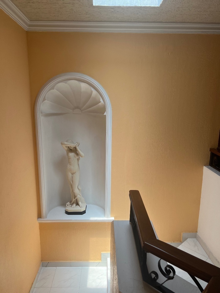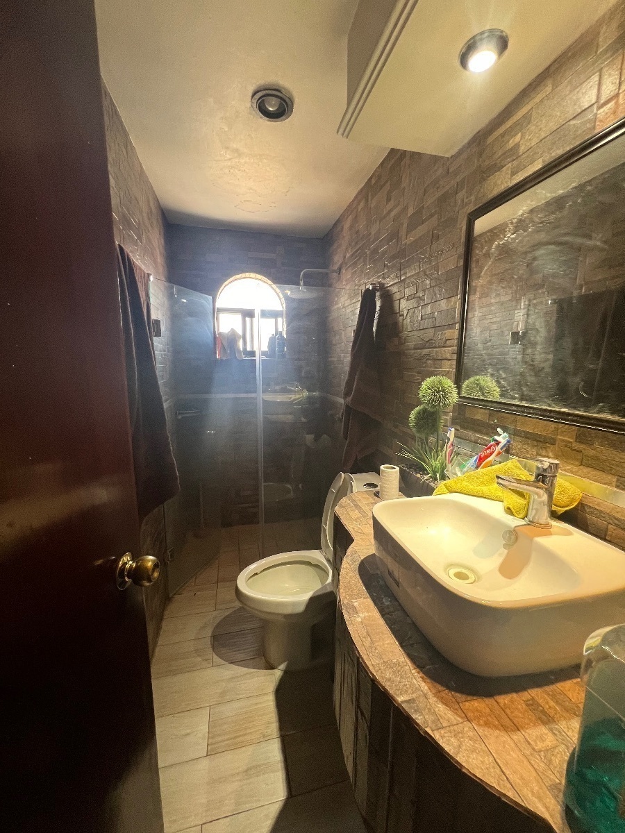 En planta baja cuenta con cochera para 3 autos, recibidor con doble altura, un medio baño de visitas, cocina integral, sala comedor, estudio, cuarto de servicio con baño completo y área de lavado, una amplia terraza.