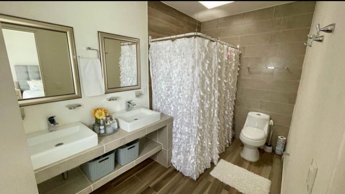 lavadora, refrigerador, estufa, campana, horno de microondas, espejos de lavabos, lava vajillas, cortineros, cortinas, persianas de alto diseño, ventiladores con control remoto, tanque estacionario con línea de llenado y dispositivo de control satelital, enfriador de vinos.
