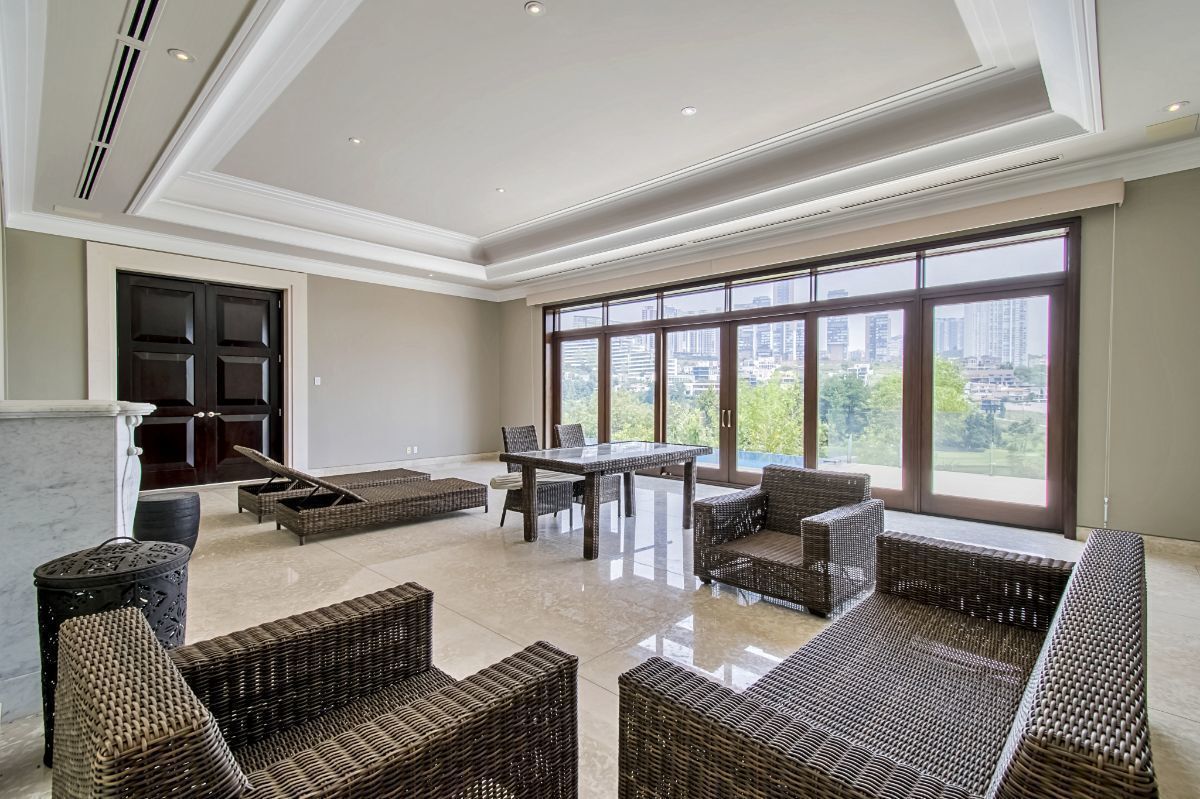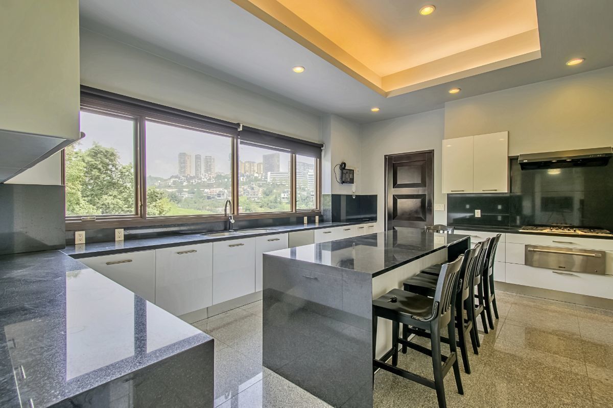En la planta alta encontramos: 5 recámaras con gran amplitud, cada una de ellas con vestidor y cortinas eléctricas. La recámara principal cuenta además con vestidor en 2 niveles y doble baño con balcón, hermosa vista al lago y a las áreas verdes.