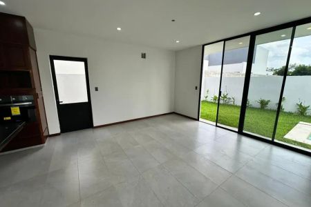 Hermosa casa en la privada residencial Jardines de Rejoyada, Komchen. Jardines de Rejoyada, un residencial de 316 terrenos exclusivos al norte de Mérida, el diseño arquitectónico del desarrollo incluye una amplia avenida principal pavimentada de 24 m de ancho, camellón y amplias glorietas adornadas con árboles típicos de la región y un diseño de paisaje exclusivo y único. Las calles secundarias sobrepasan el ancho mínimo requerido, quedando de 10.5 m con banquetas de 3 m.