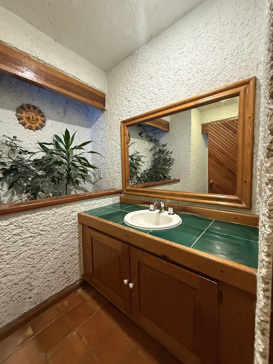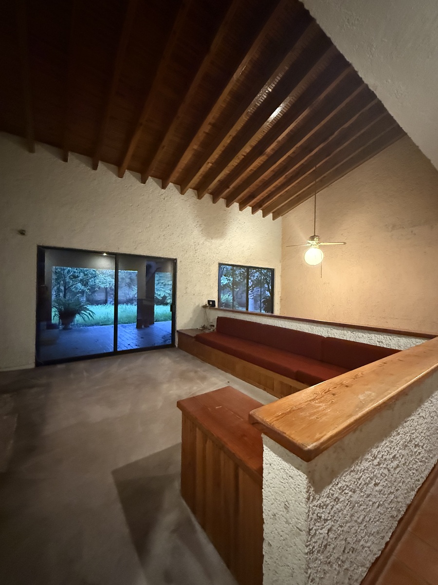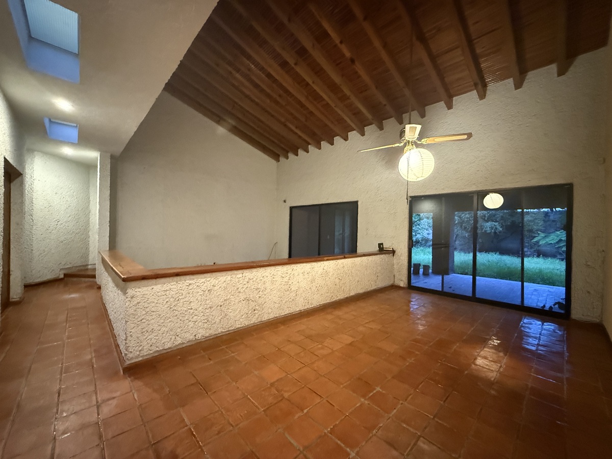 Cuenta con 3 recámaras, cada una con baño propio, cocina cerrada, cuarto de servicio, área de TV, y una estancia con doble altura que incluye un segundo nivel ideal para zona de lectura o bar, jardín con terraza.