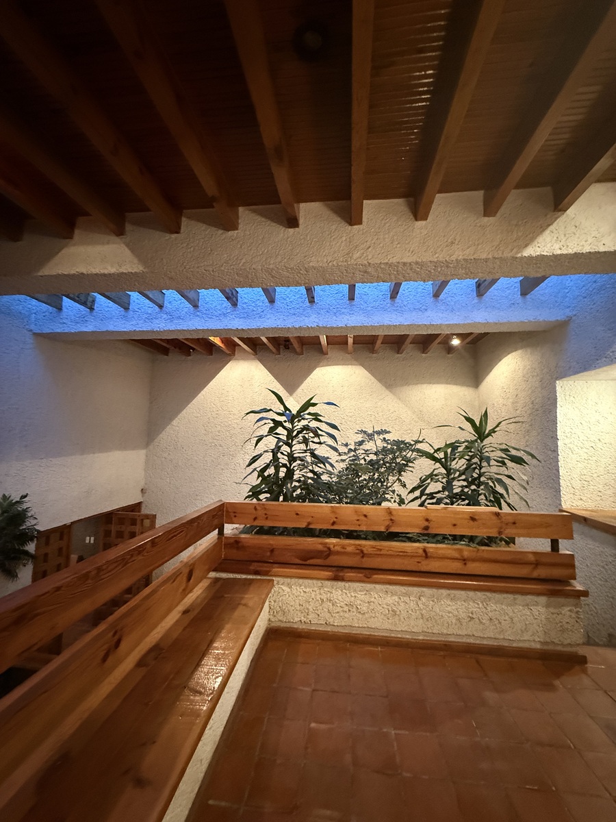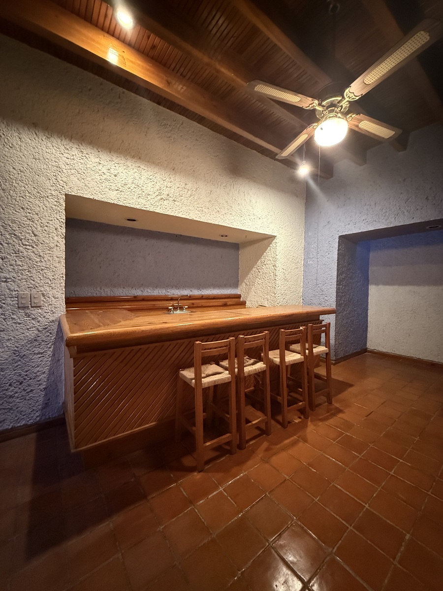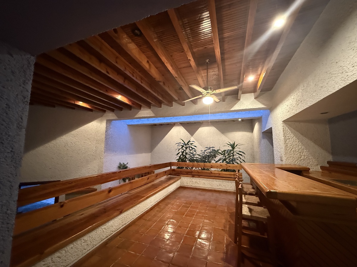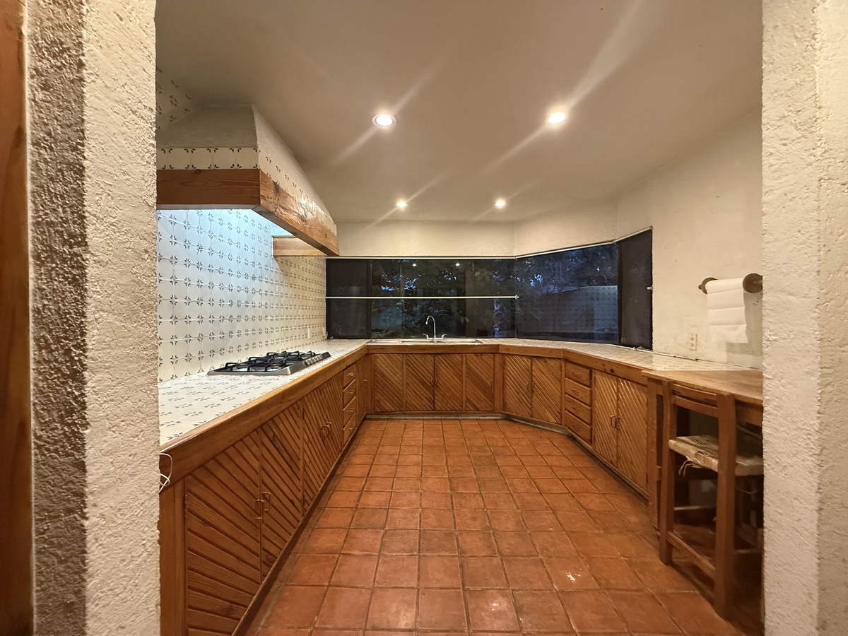 Cuenta con 3 recámaras, cada una con baño propio, cocina cerrada, cuarto de servicio, área de TV, y una estancia con doble altura que incluye un segundo nivel ideal para zona de lectura o bar, jardín con terraza.