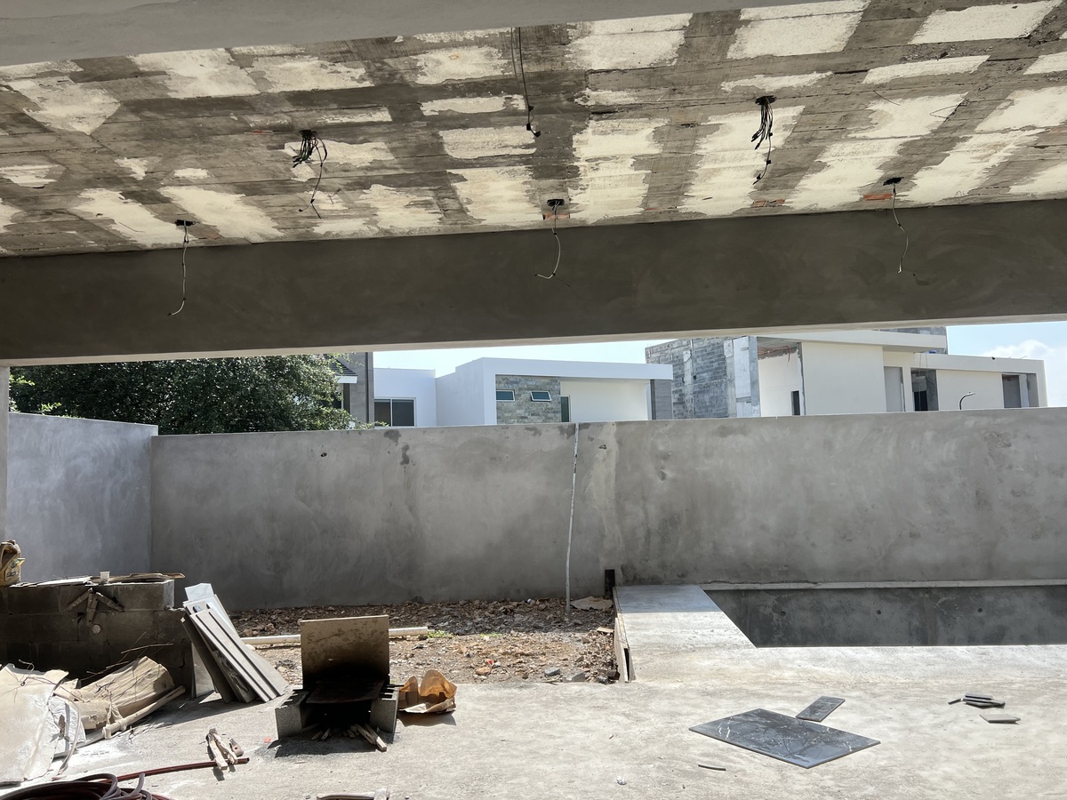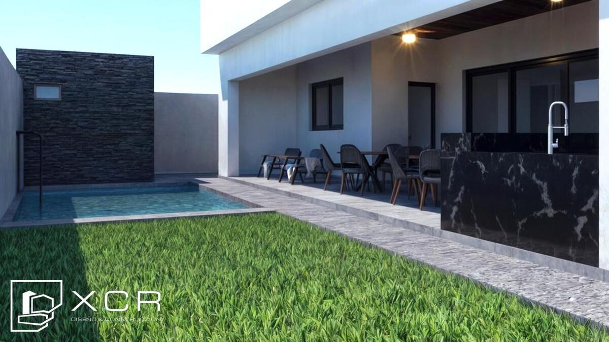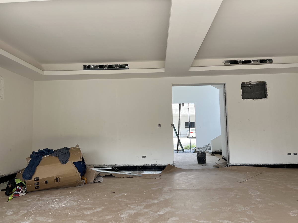 Planta baja se encuentra , recibidor doble altura , oficina, baño de visitas completo , sala comedor , cocina , pantry, terraza y patio de 60m2.