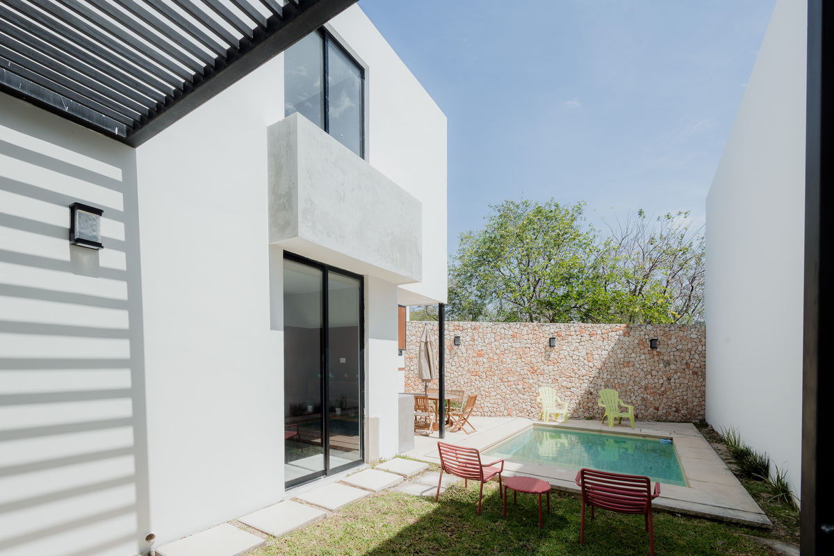 -Alberca con chapoteadero, área de asoleadero, espacio para jardín posterior y terraza apergolada.