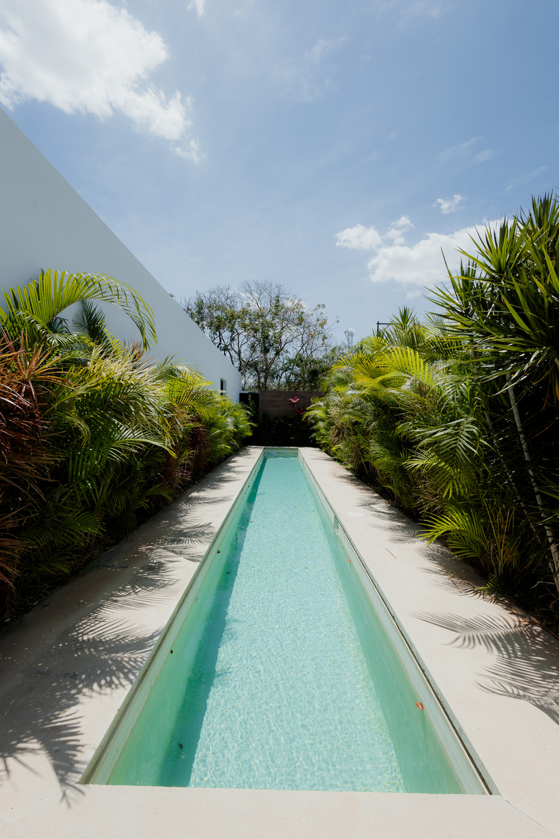 -Recámara / sala de TV con baño completo - compartido con alberca (acceso exterior). *Lote 1 7 con clóset vestidor sin acceso ext.