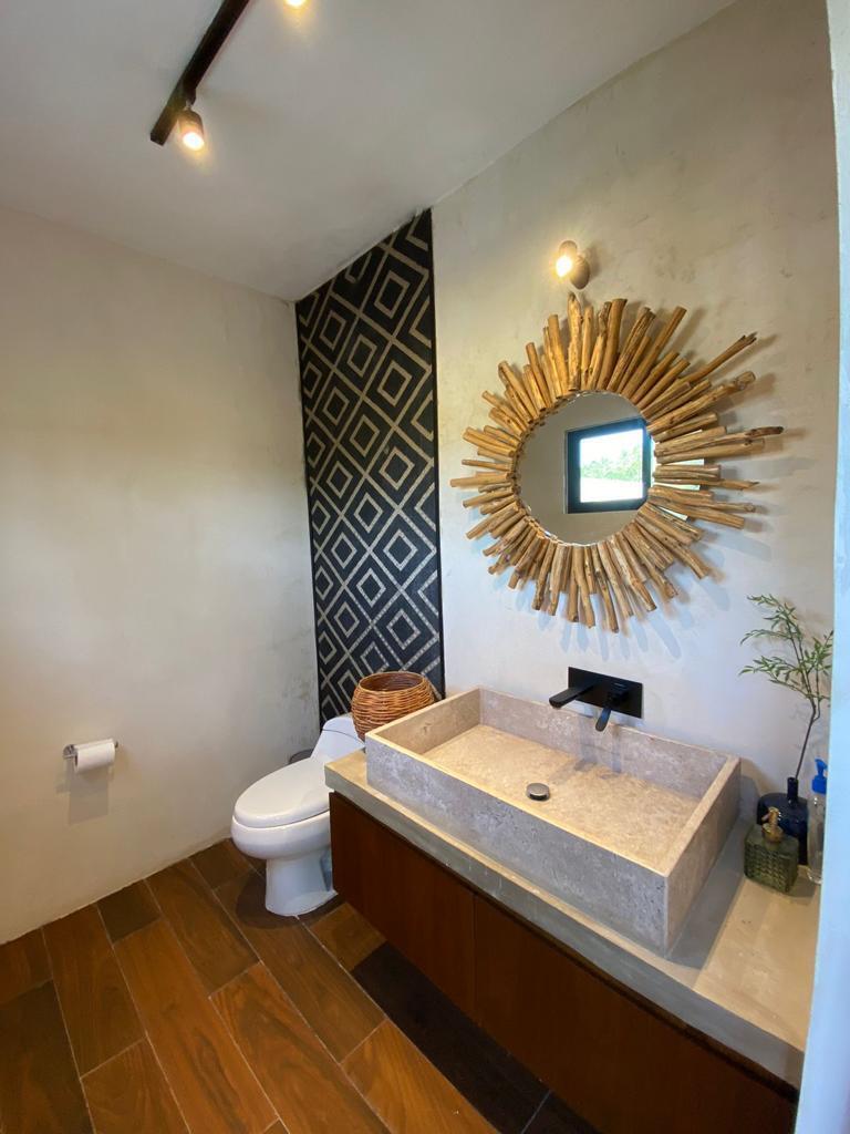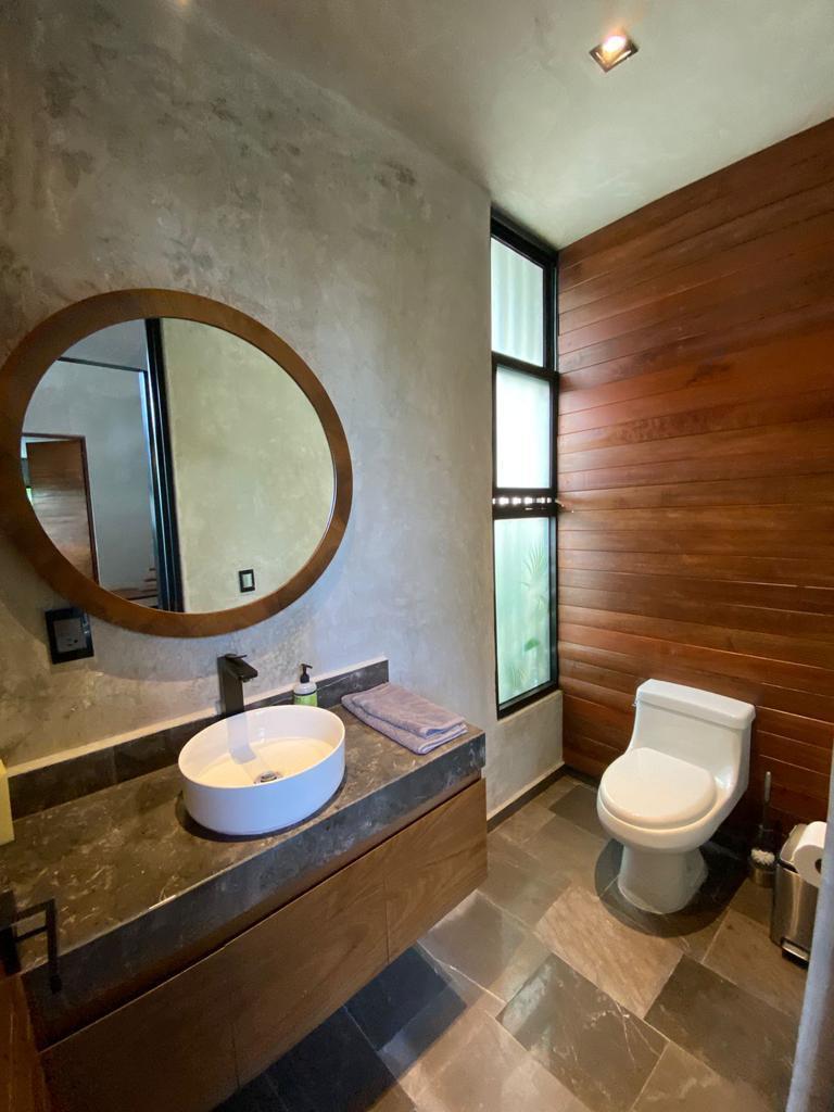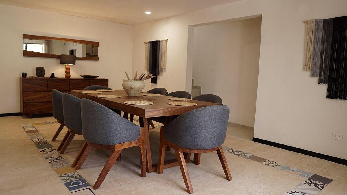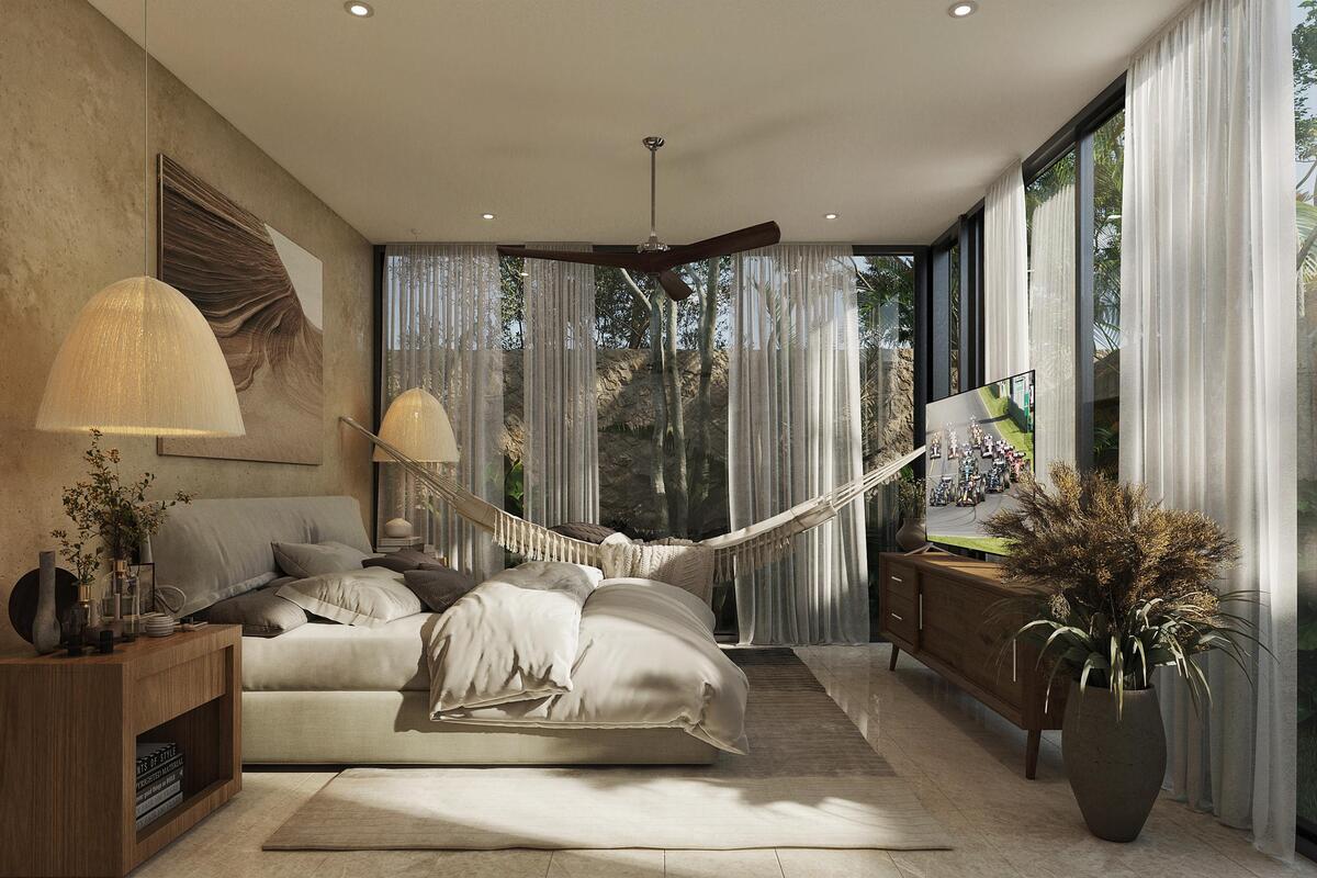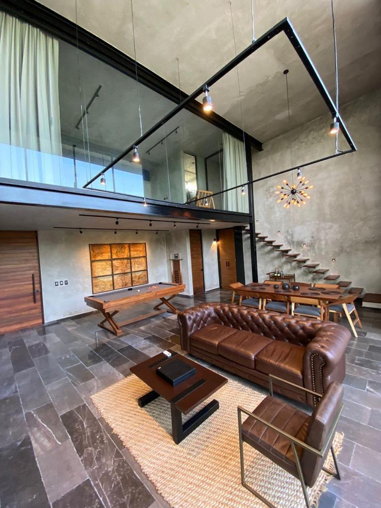 La casa está ubicada dentro de la Privada Aventa rodeada de exuberantes jardines y paisajes cuidadosamente diseñados. La fachada presenta un diseño arquitectónico moderno con líneas limpias y acabados de alta calidad que reflejan el lujo y la elegancia.