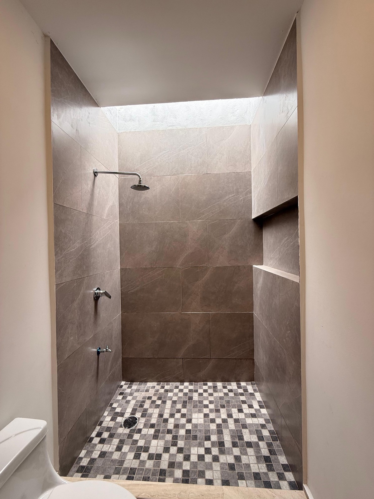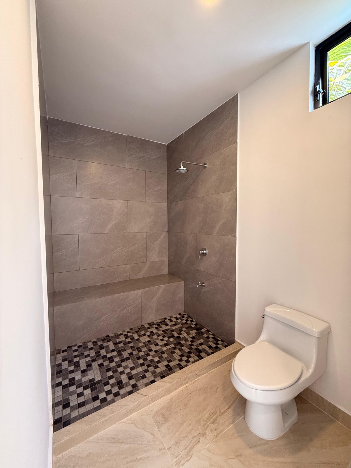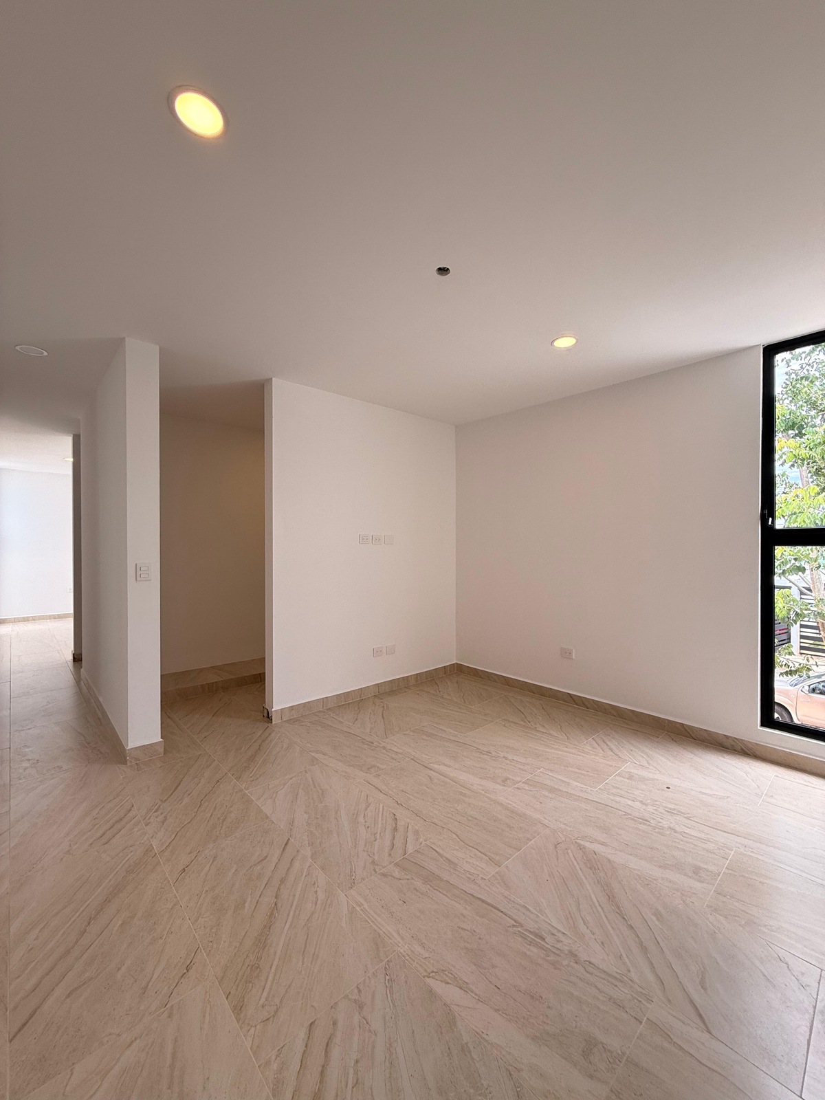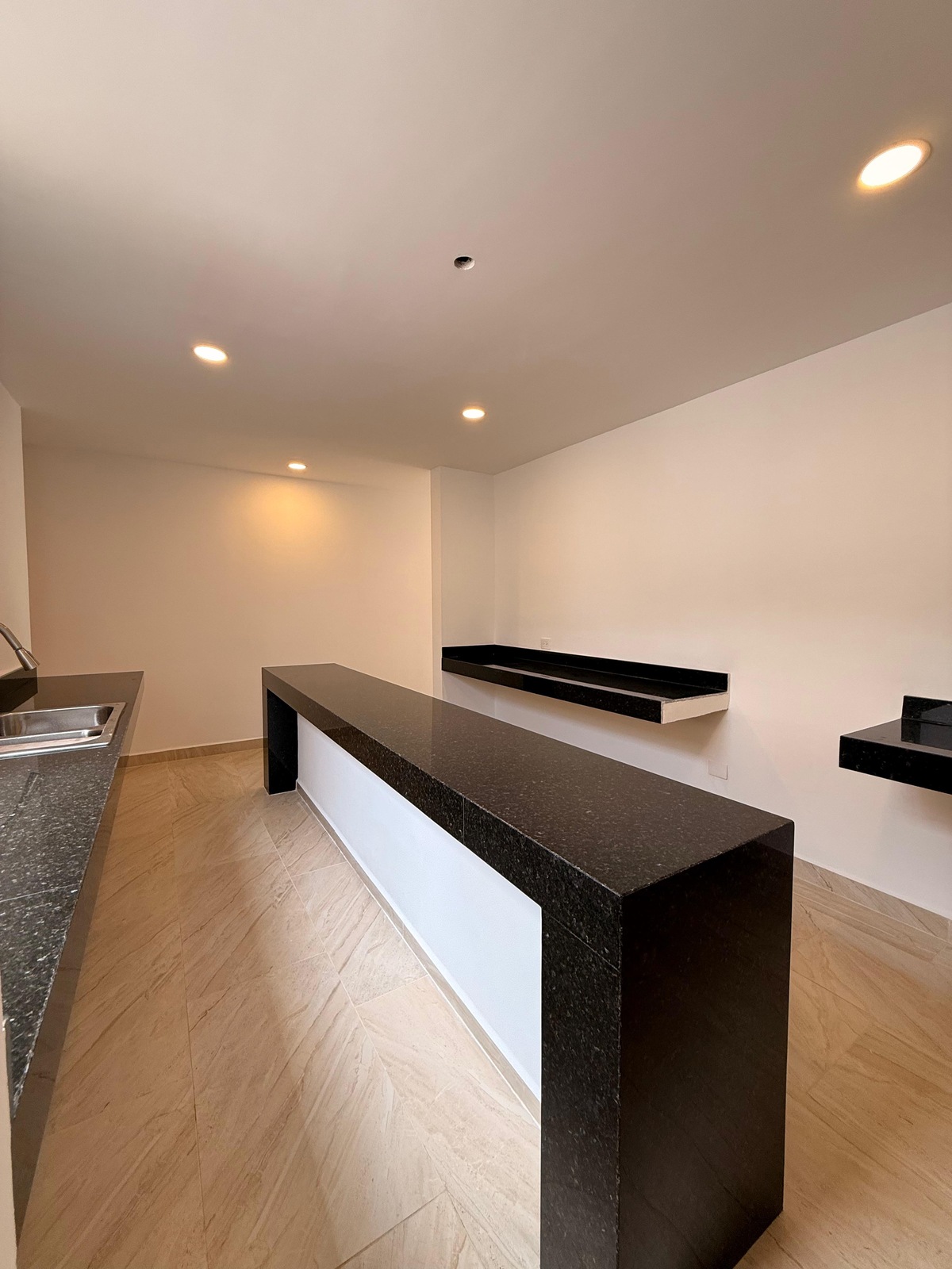 Se entrega con carpintería inferior en cocina y fijo de cristal en baños. Meseta de baños en mármol Santo Tomás, pisos de porcelanato gran formato, meseta de cocina en granito Ubatuba.