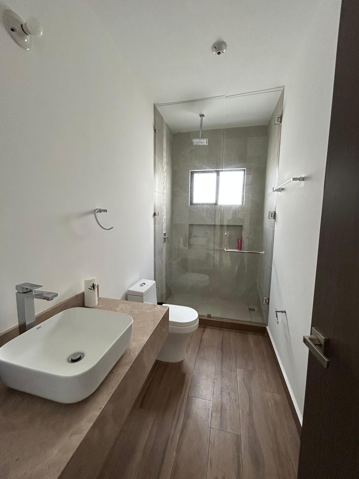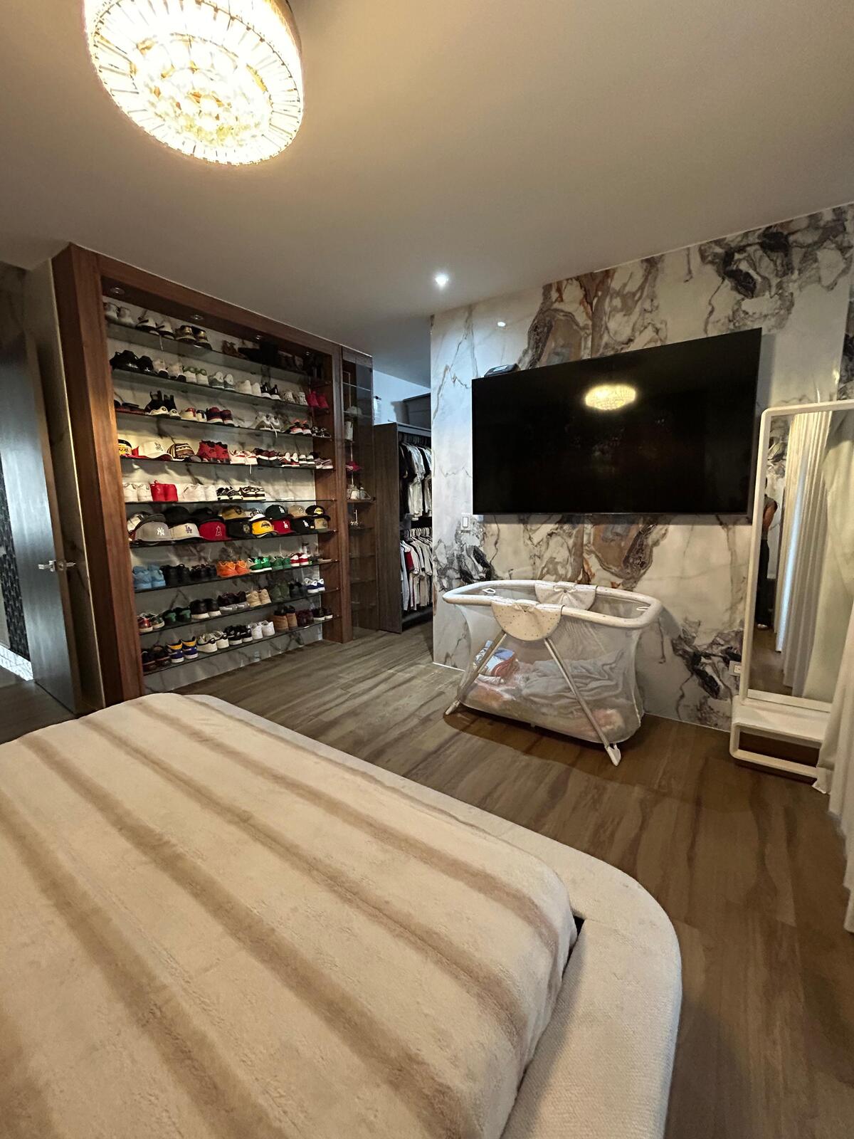 -Recámara Principal con baño equipado con doble lavabo y cancel de vidrio, vestidor equipado con carpintería, y muebles extra para uso a gusto, balcón.