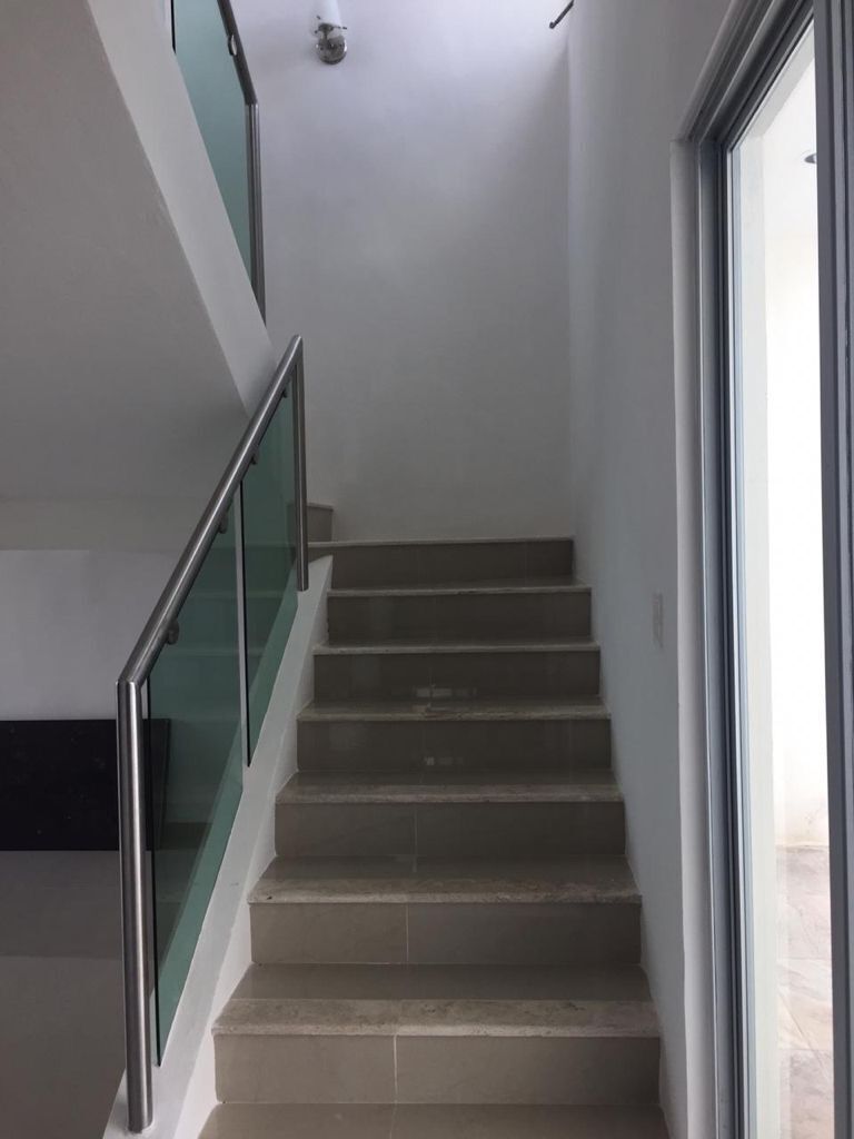 Escalera con barandal con tubular en acero inoxidable y con cristal templado de 5 mm
