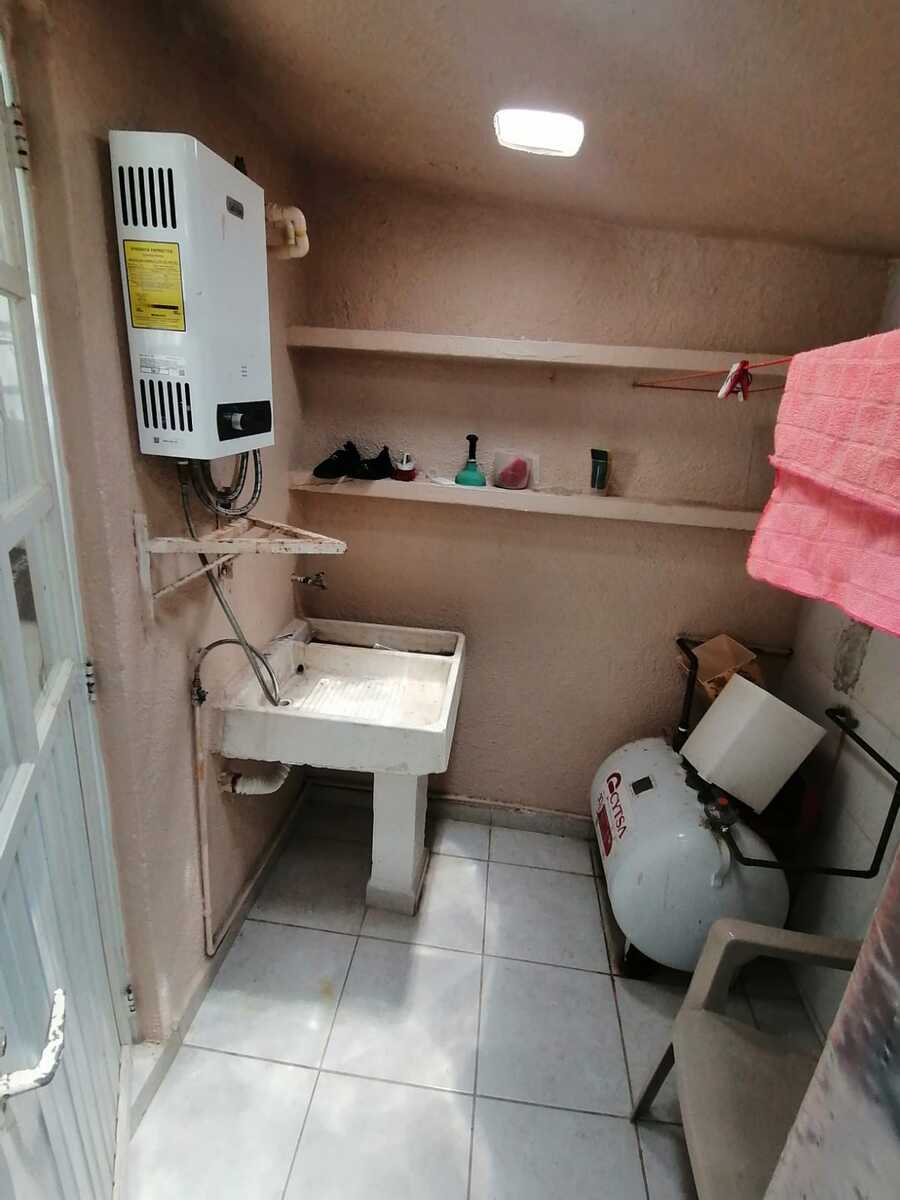 Planta baja: Medio baño, área de lavado, cocina/comedor, sala amplia.