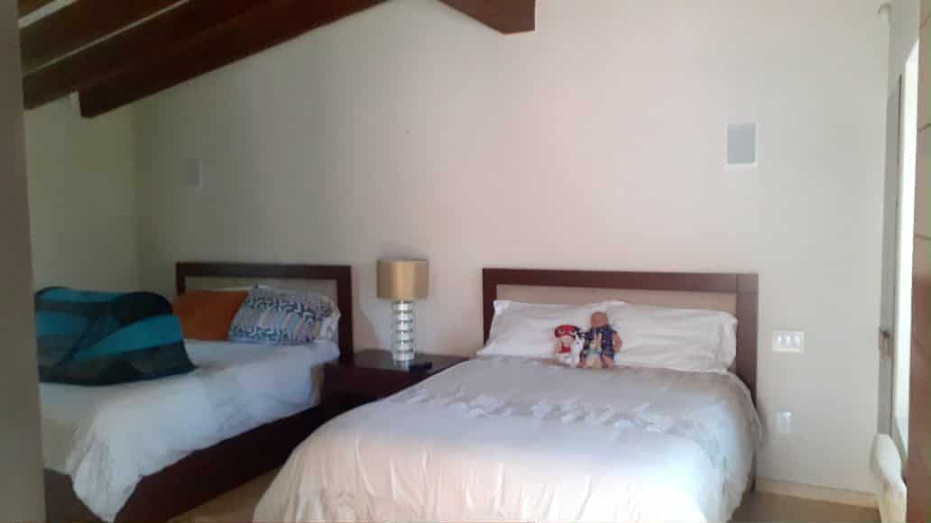Recámara 3: 2 camas queen, 2 closets, chimenea, baño completo y pantalla movible.