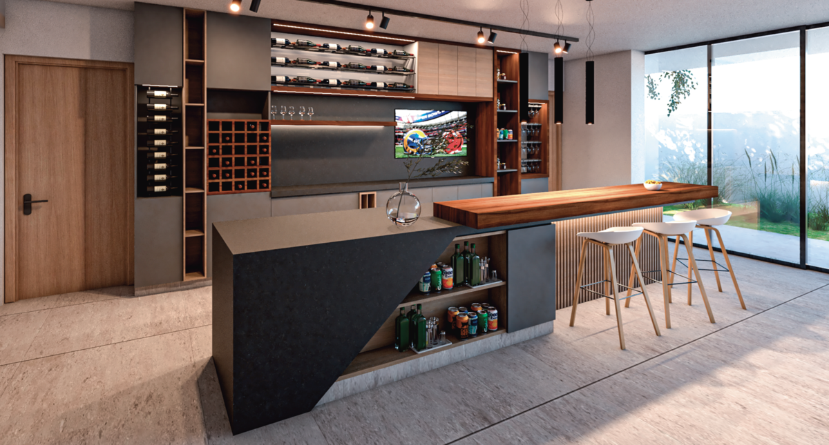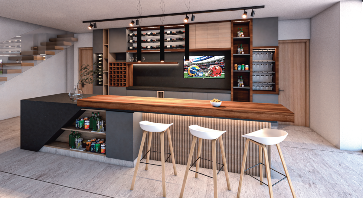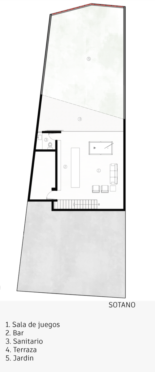 SOTANO: Area de juegos, bar, balo de visitas, terraza, jardin