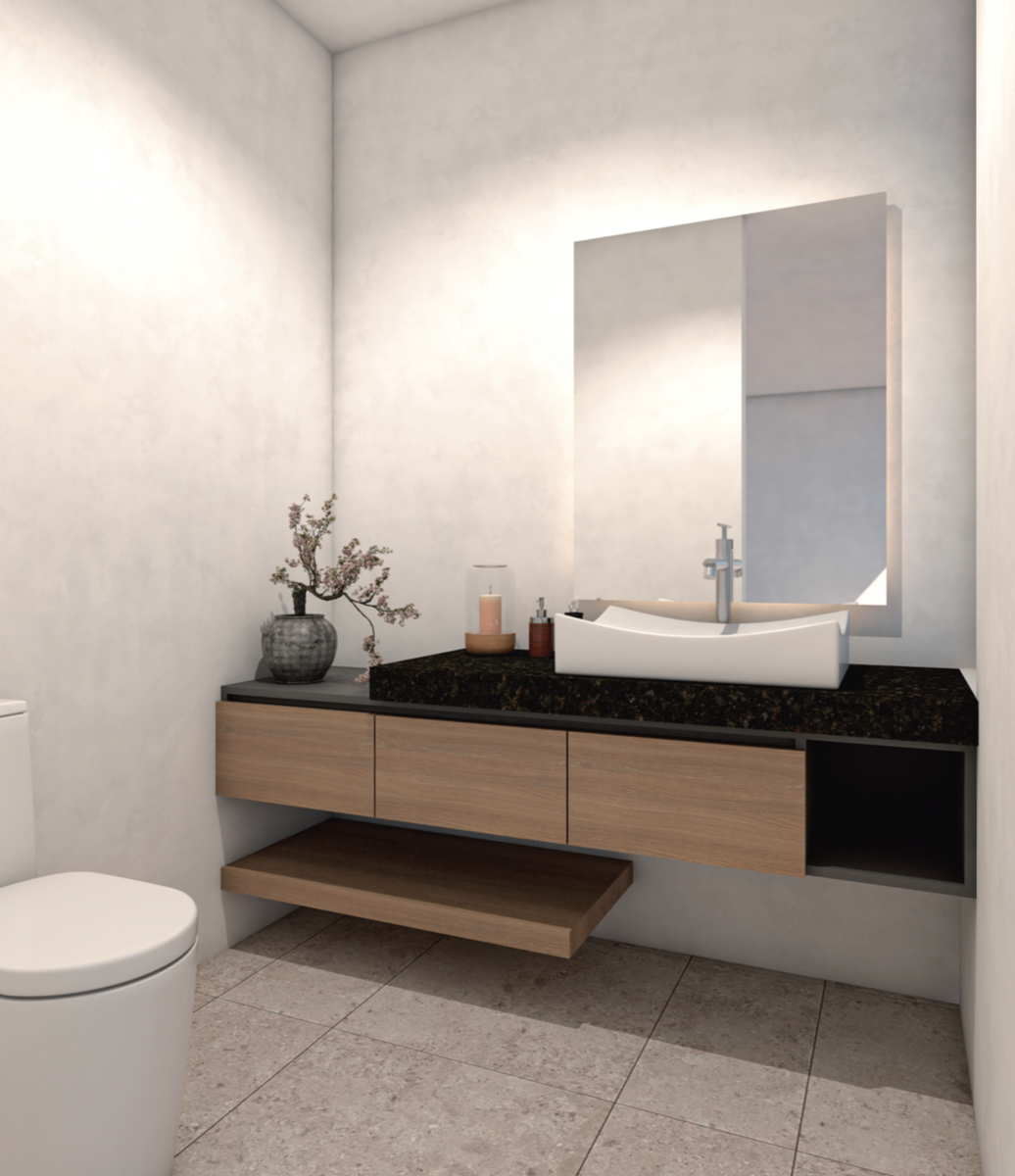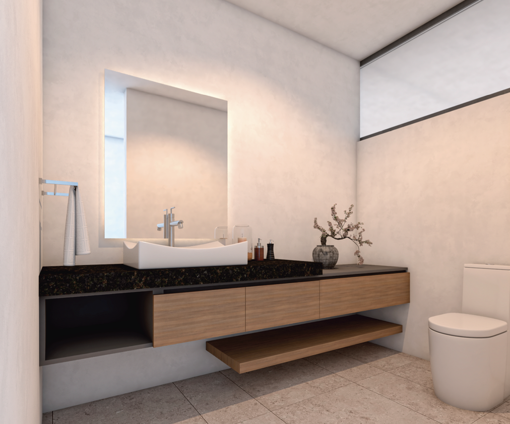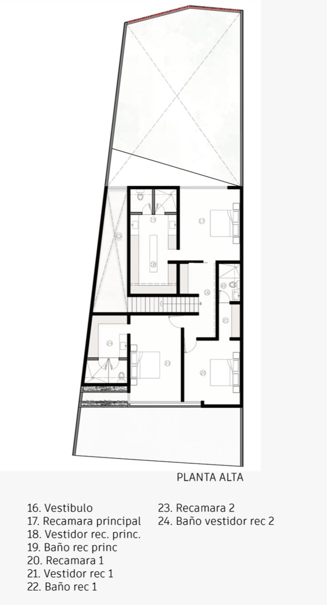 PLANTA ALTA: recamara principal con vestidor con isla y baño completo, 2 recamaras secundarias cada una con vestidor y baño completo