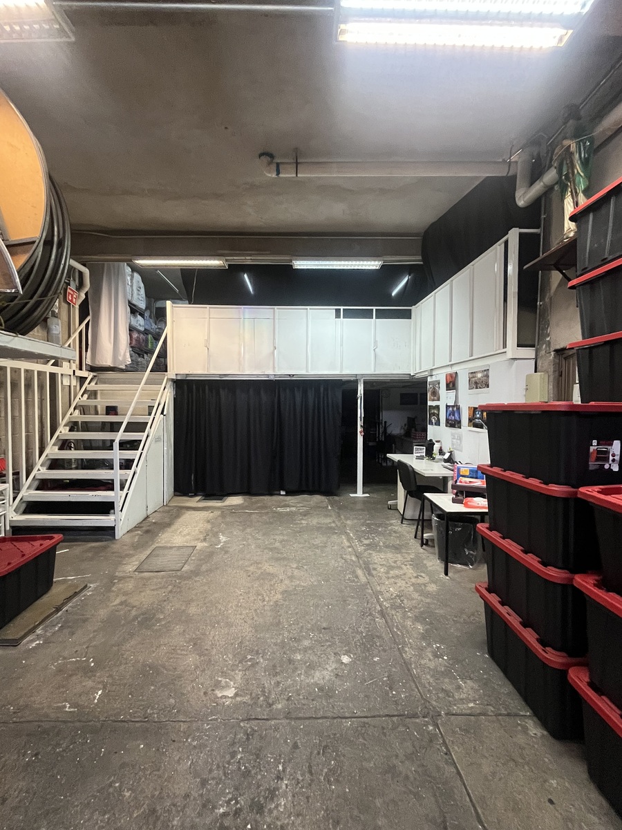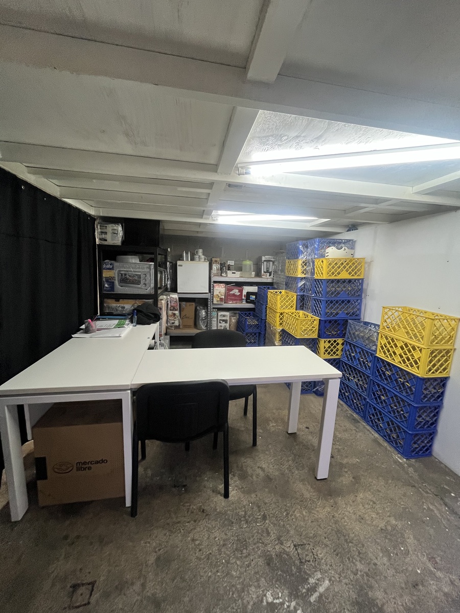 Salón de 13 por 9m con montacargas que se usa como Dark Kitchet con instalaciones (se pueden incluir con costo extra)