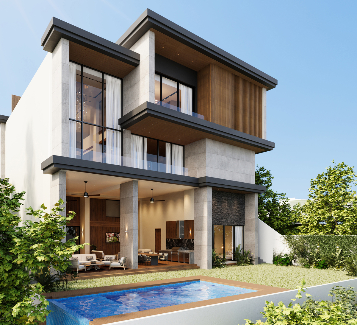 escalera a Planta baja, cubo de elevador, Alberca, cuarto de
