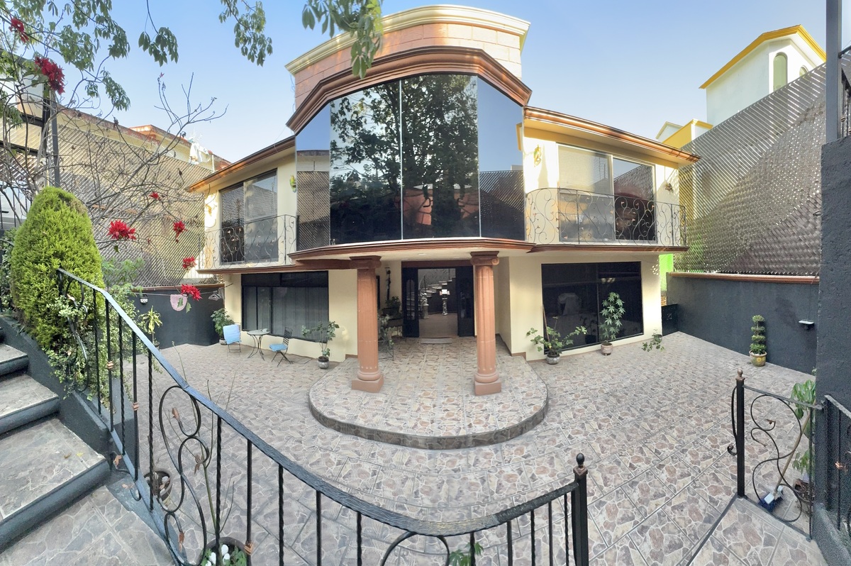 Casa ubicada en avenida Boulevard Del Arco, para ingresar a la propiedad nos reciben la puerta principal y dos portones que nos conducen a los estacionamientos.