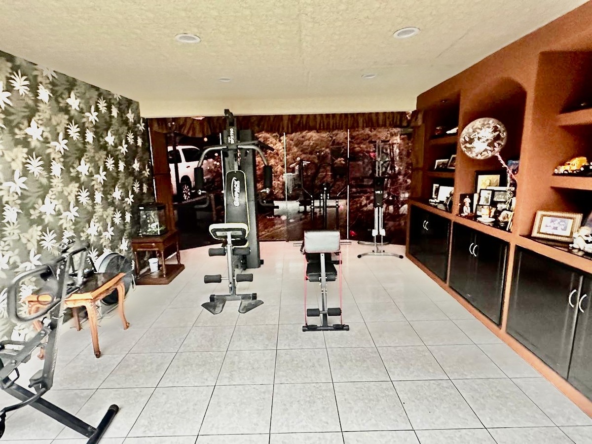 Bajando al tercer piso que se encuentra el área de televisión a nivel del jardín, ahí está el área de fiestas, un gran salón de juegos que también se puede usar como: Área estudio de música y también hay una cuarta habitación que puede ser una habitación para visitas.
