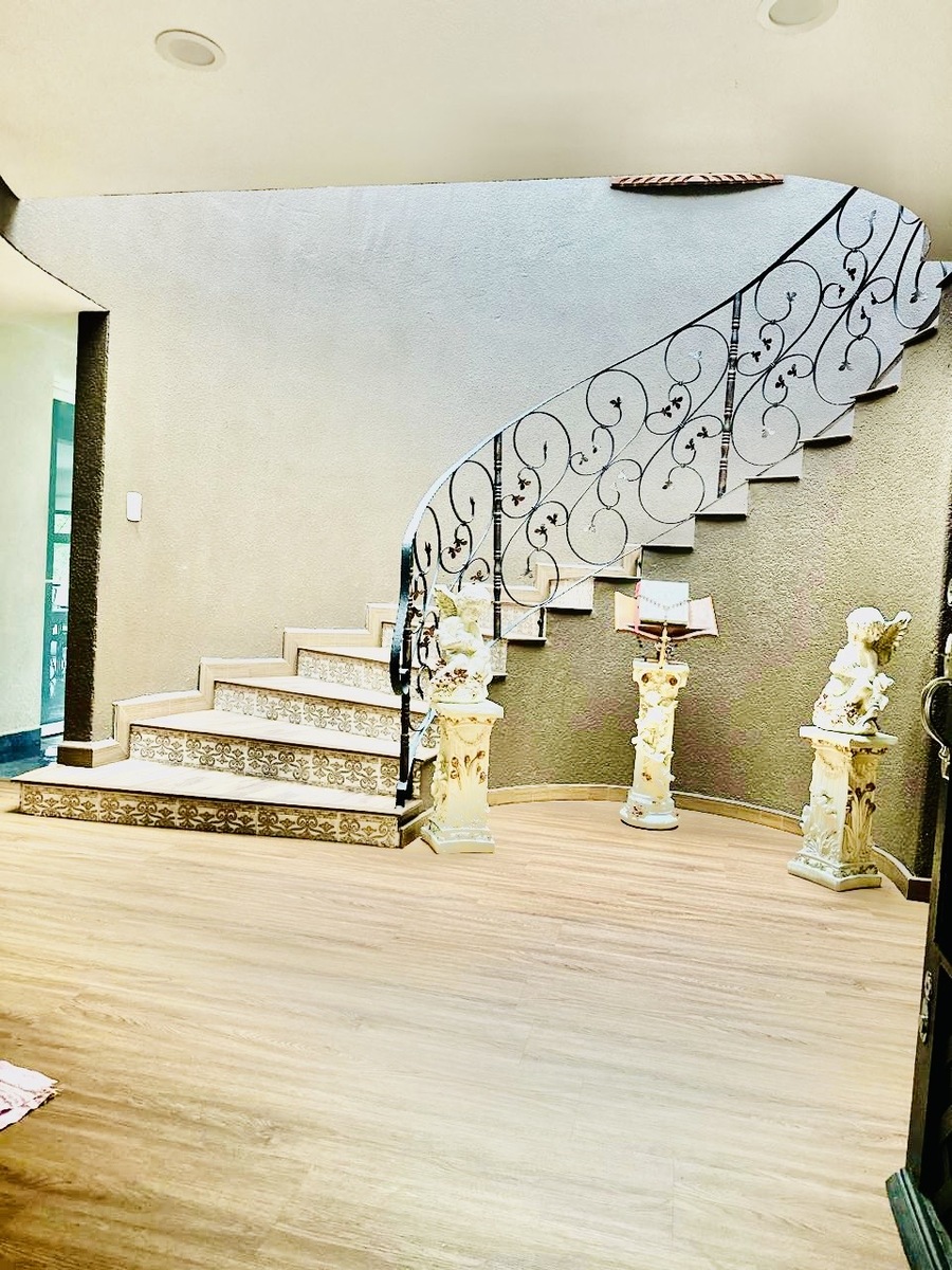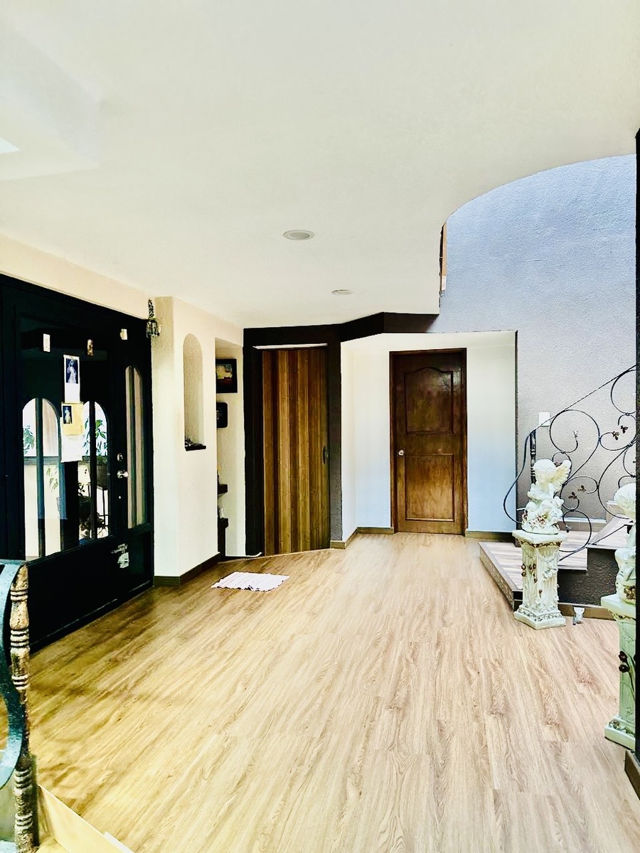 Bajando unas escaleras encontramos la casa tiene un gran recibidor donde vamos a ver la escalera que conduce al área íntima, cabe aclarar que la casa consta de tres niveles.