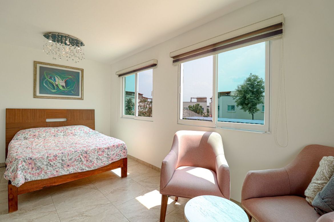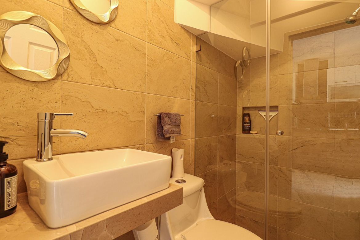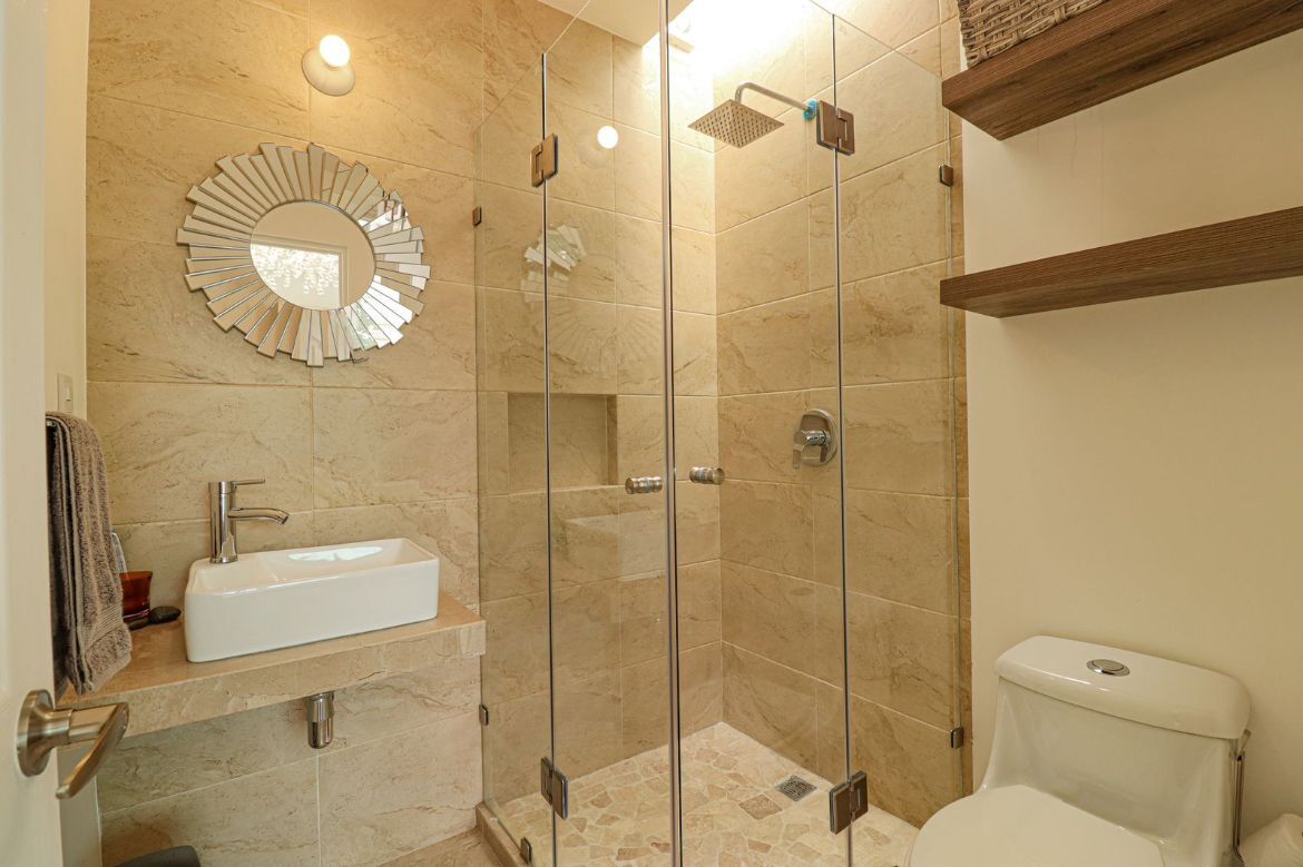 2 habitaciones con closets, cada una con baño completo (con cancel de vidrio templado) .