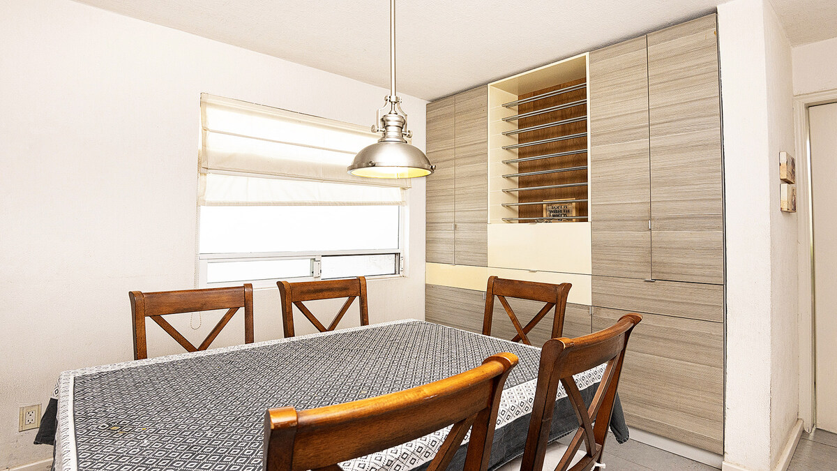 Cocina equipada con alacenas, área de antecomedor y pantry
