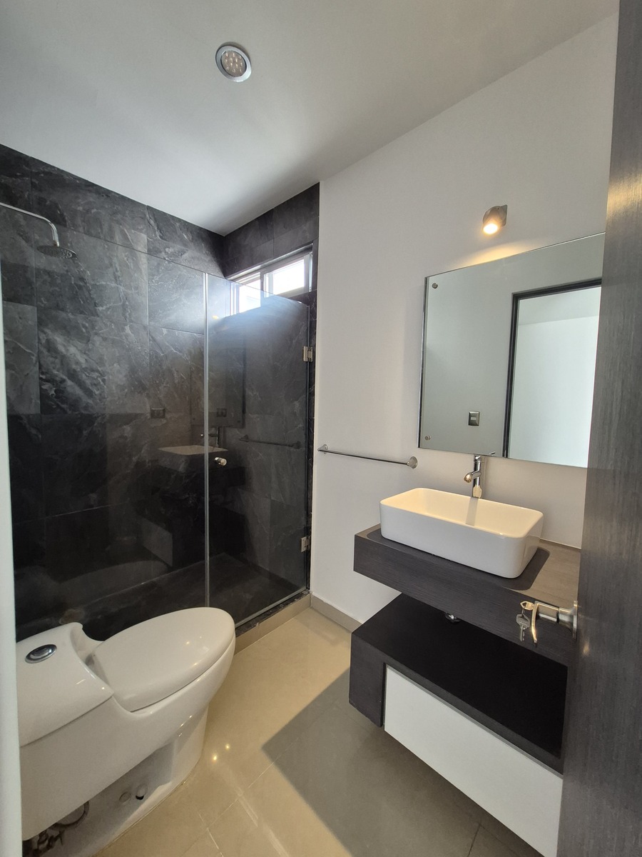 3 recámaras amplias con su propio baño cada una, clósets, con piso laminado y persianas.