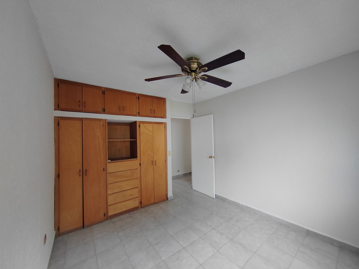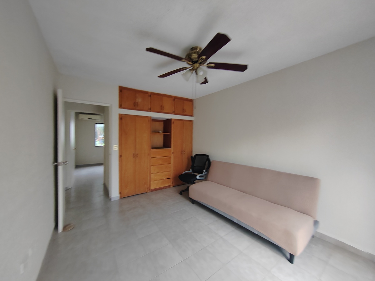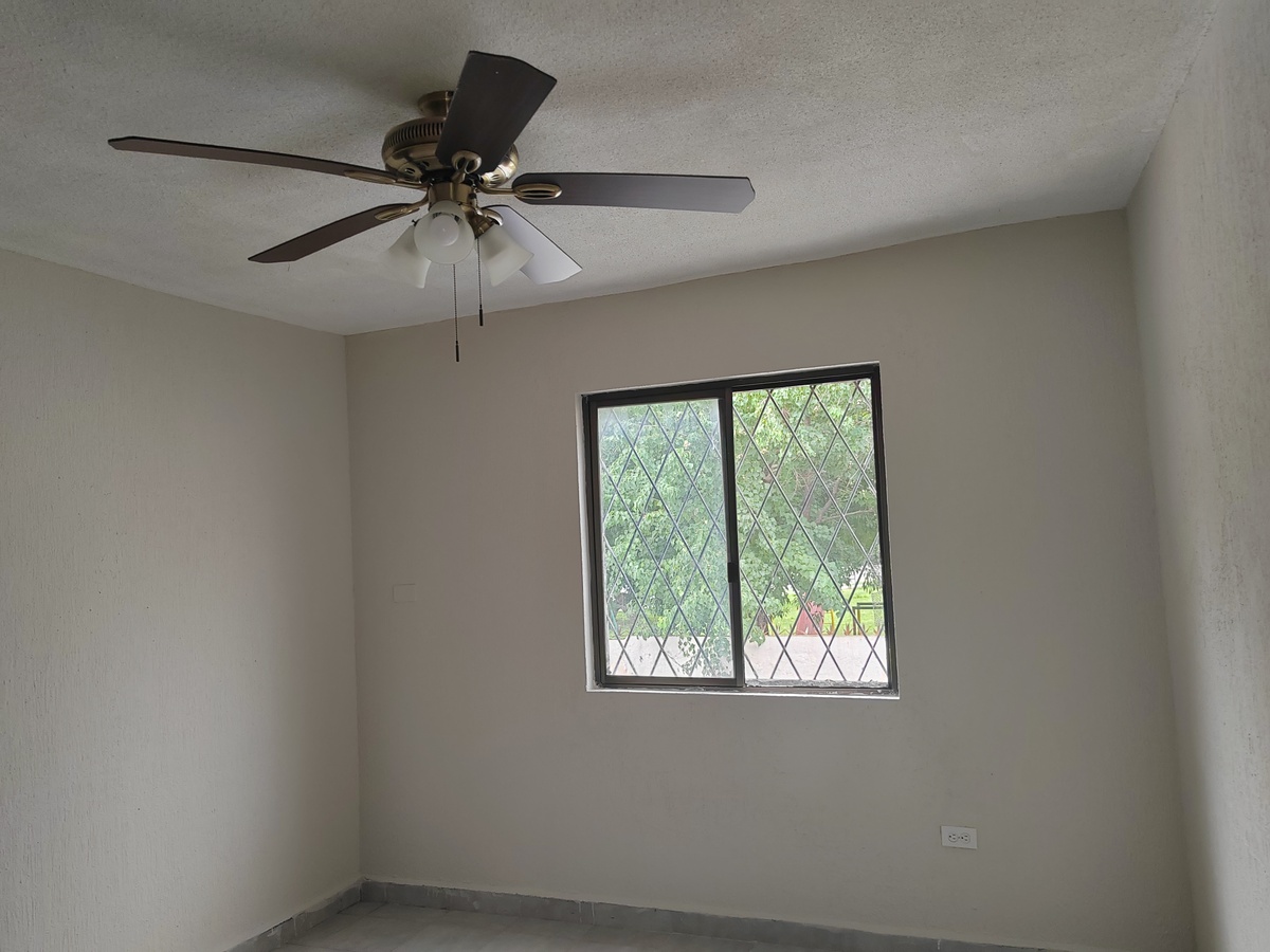 Recámara secundaria 2 cuenta con closet de pared y abanico de techo.