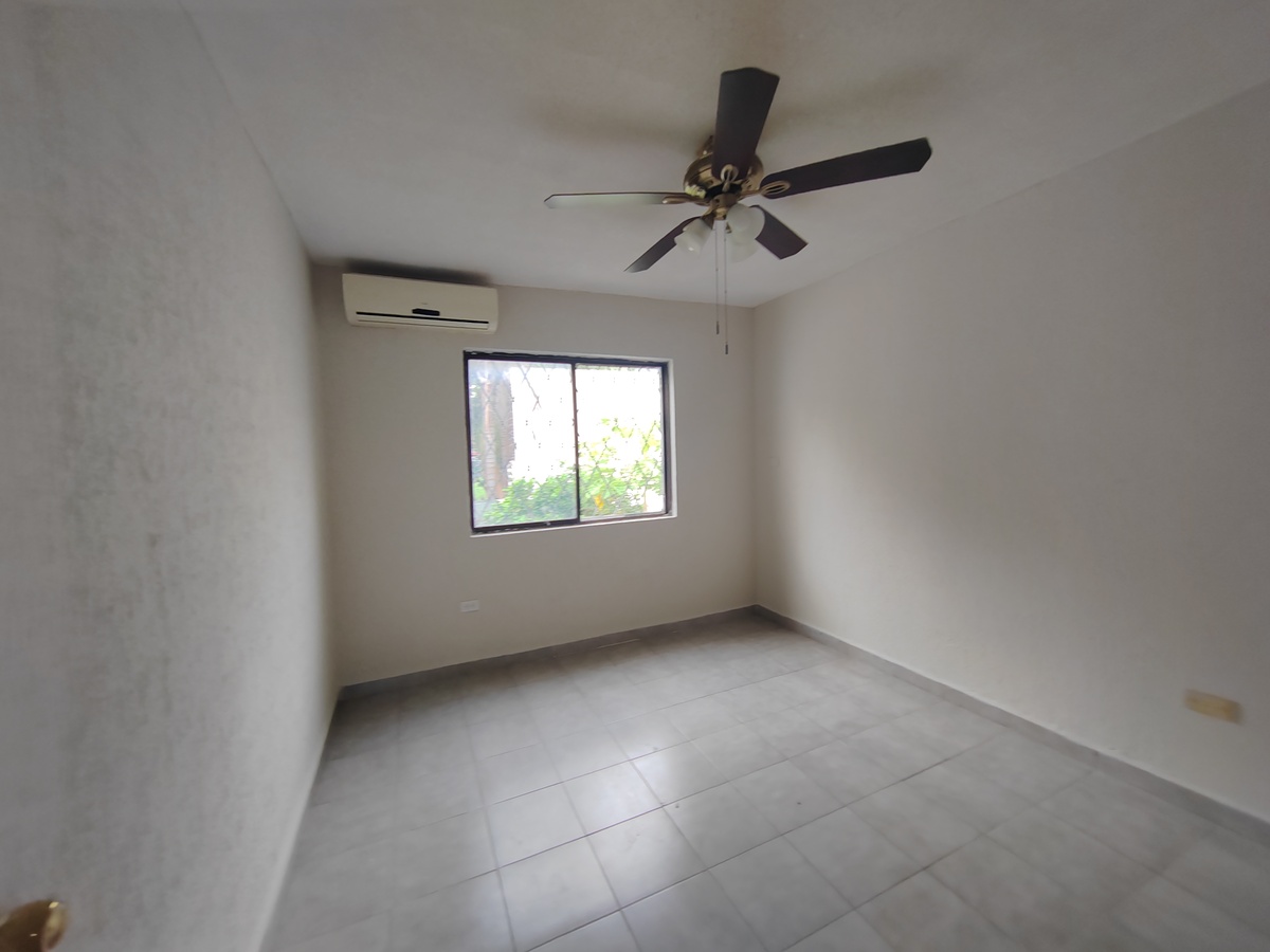 Recámara secundaria 1 , con closet de pared, abanico de techo y minisplit.