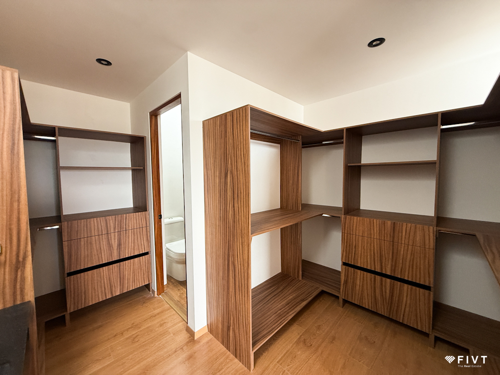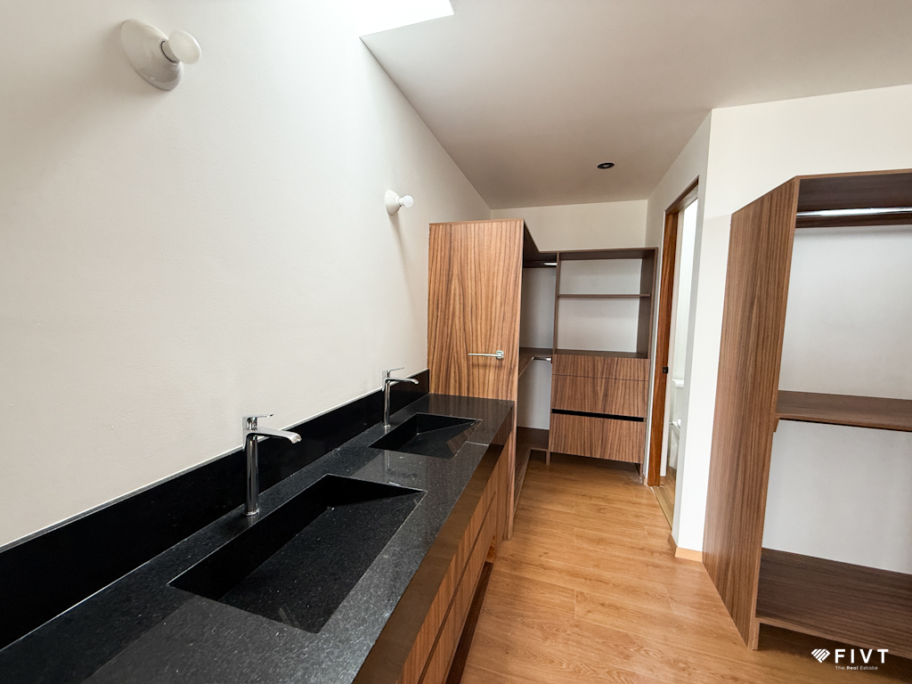 Recámara principal con vestidor, baño privado y vistas panorámicas.