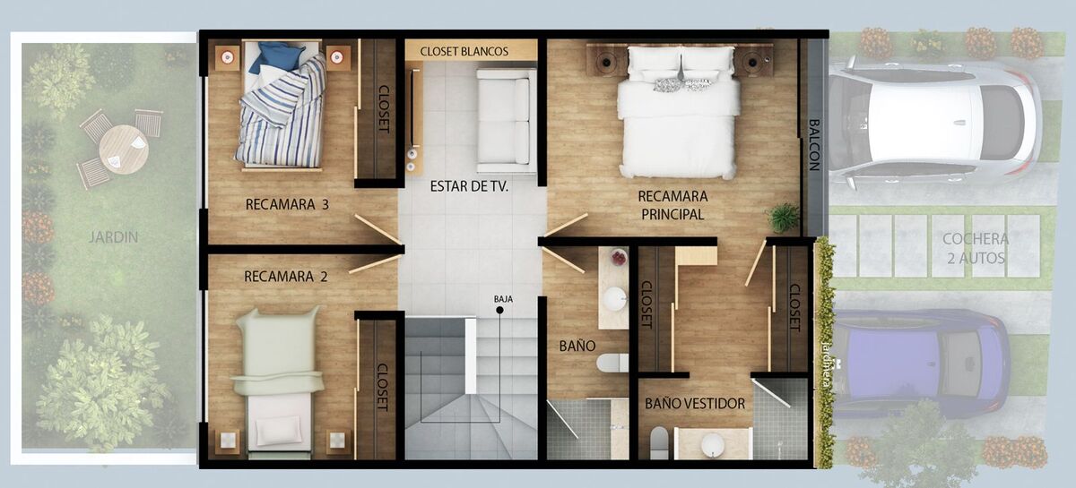 - 3 recámaras (2 con aire acondicionado) principal con baño/vestidor