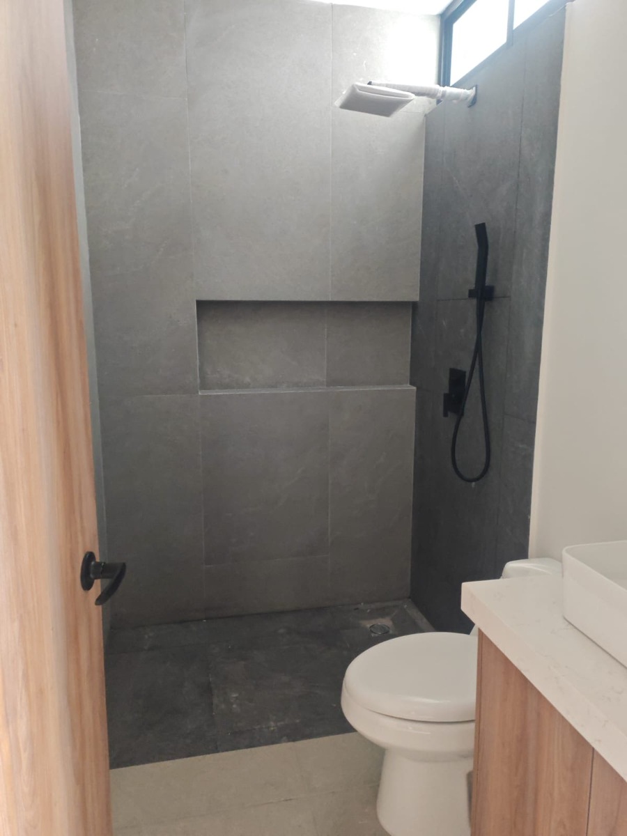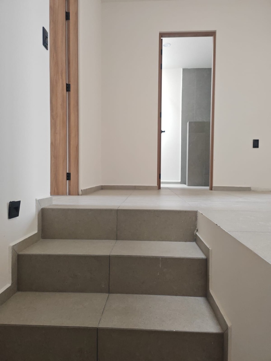 Planta baja:sala y comedor con gran iluminación natural, cocina con isla de cuarzo, cuarto de lavado, baño completo, oficina o sala de TV y un pequeño jardín.