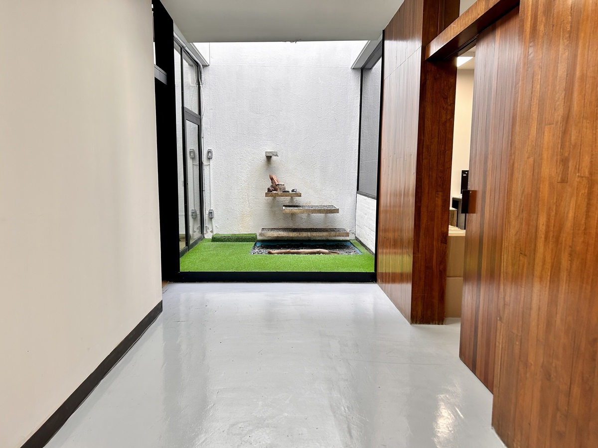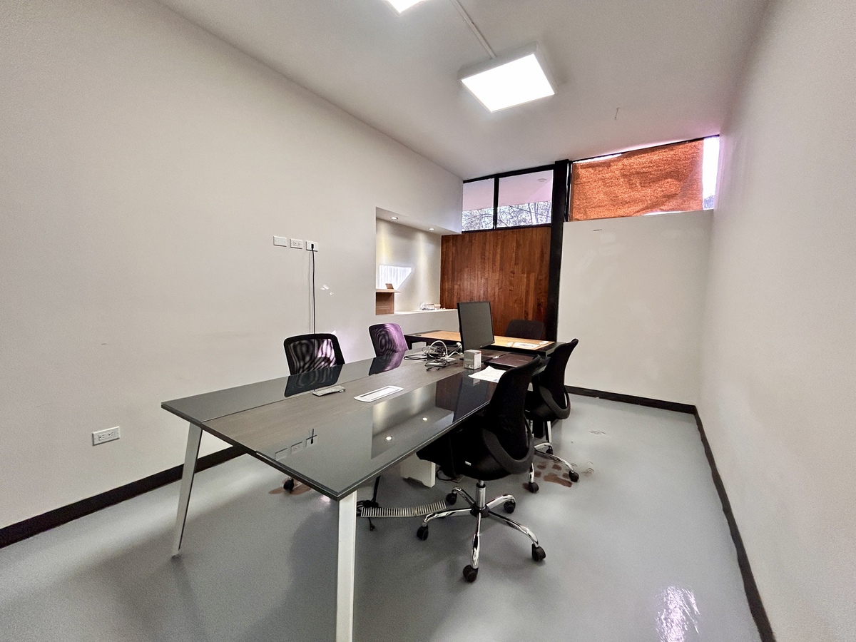 Cuenta con dos amplios espacios de coworking abiertos; 4 oficinas privadas que pueden ser utilizadas como tal o como salas de junta. Tres baños completos, un pequeño departamento para los horarios largos de trabajo, cocina integral remodelada con antecomedor y un espacio abierto ideal para la relajación.