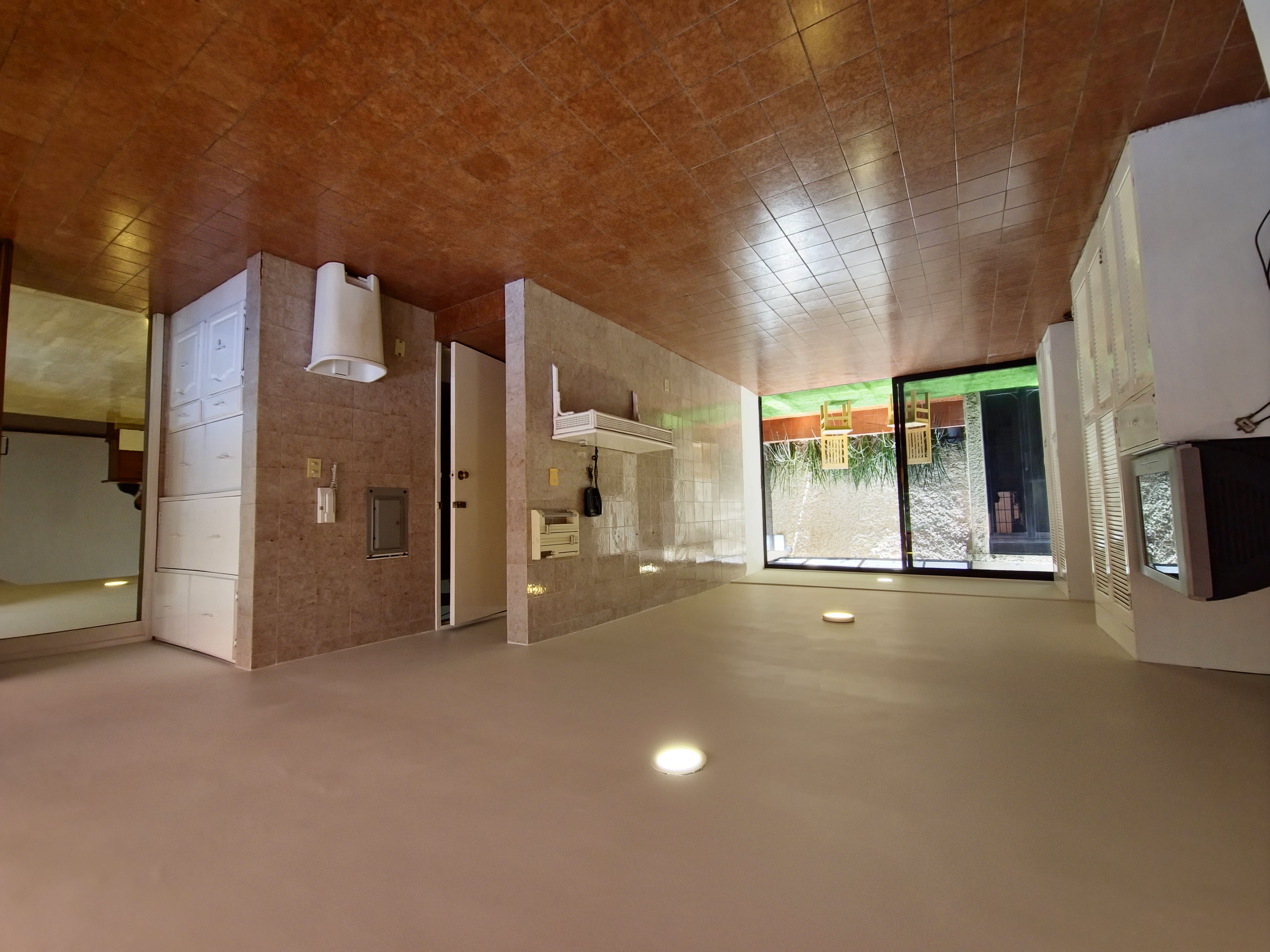 Área de tv con luz natural y estudio, comunica a la cocina cuarto de servicio con baño completo, bodega amplia, área para cava de vinos, terraza con pasto verde, conecta con la cocina. La cocina con amplios espacios y área de ante comedor.