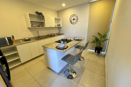 Cocina con barra de Chukum y dos bancos
