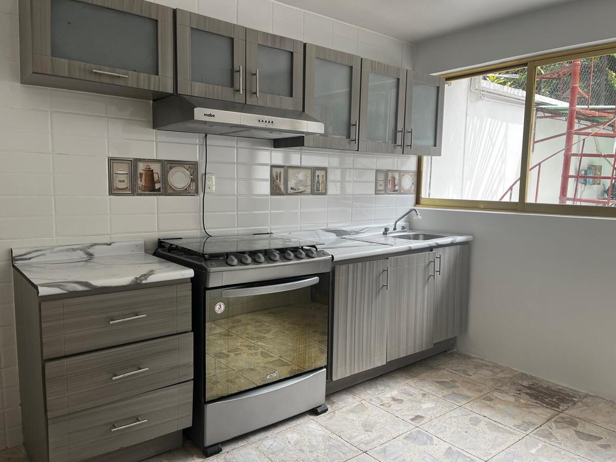 Su cocina es integral con cerpamicos en recubrimientos, con salida al patio trasero.