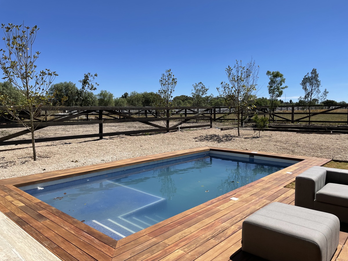 and onward to the open terrace with a grill, overlooking the lush garden and shimmering pool, where sunsets bathe the landscape in gold.