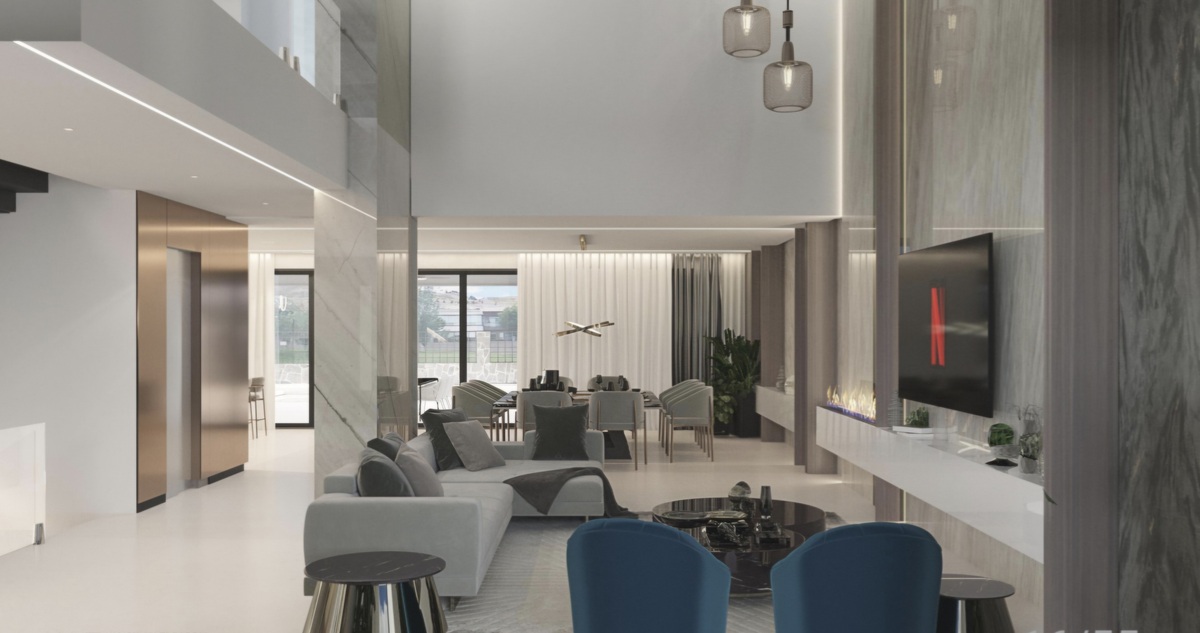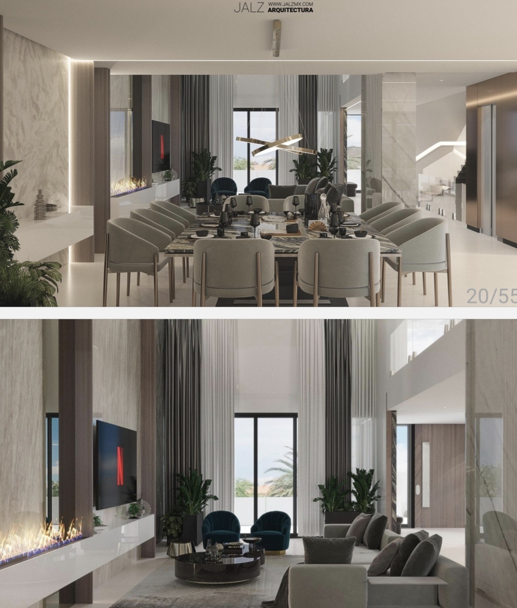 P.B. Area Social interior: Crema Venecia Pulido, Area Social Exterior: Crema Venecia Leather